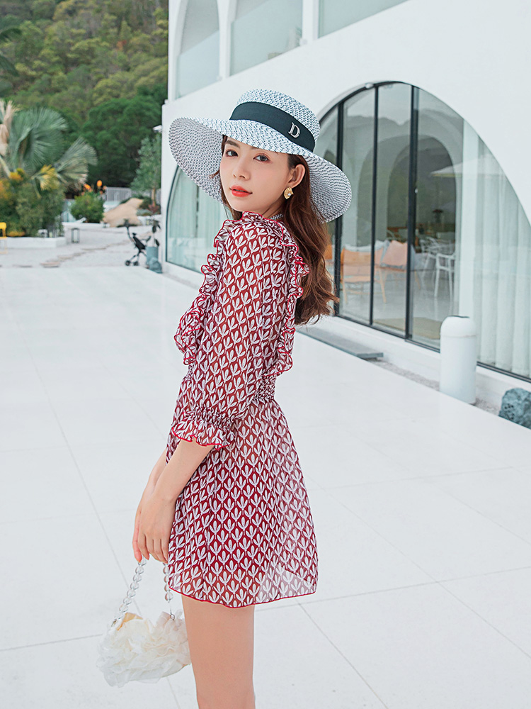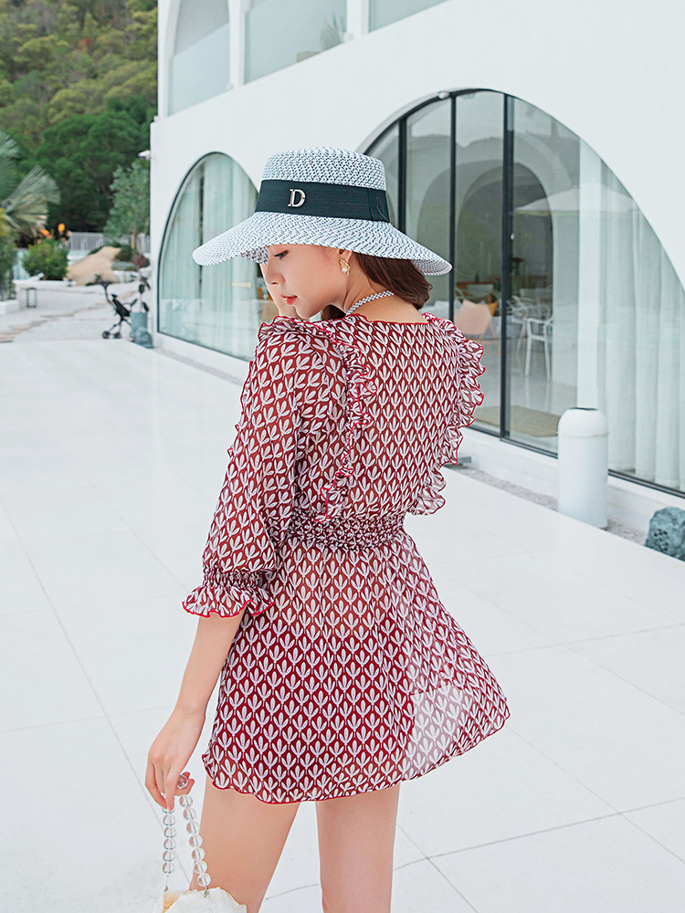 Vido new swimsuit woman sprinkled with red high waist three sets of bikini Belly Hooded Hood Lean Spa Swimsuit Summer