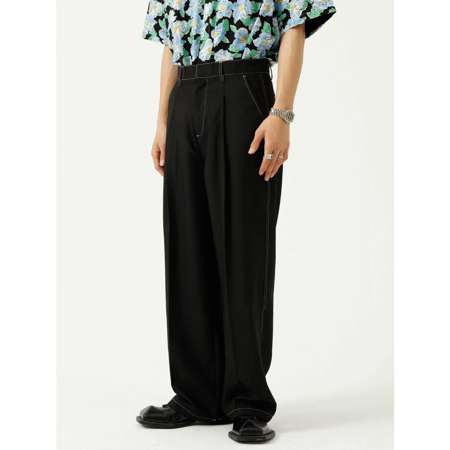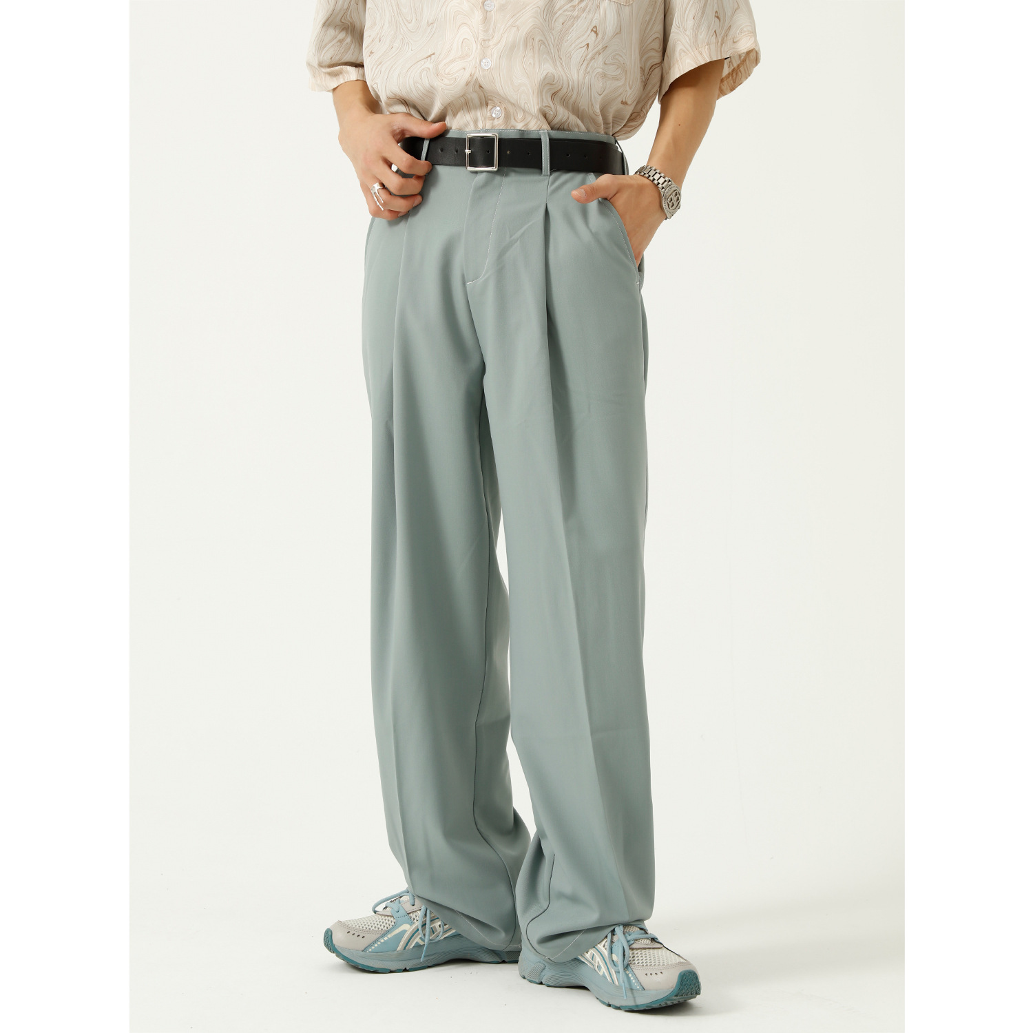 Dosho men's clothing Korean version loose with high western clothing pants male black summer straight drum pure color suit long pants