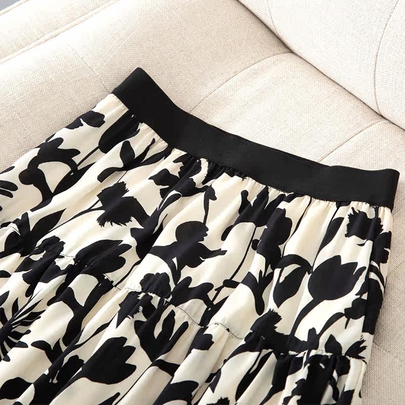 Ink print skirt summer mid-length women's skirt a word summer 2021 new