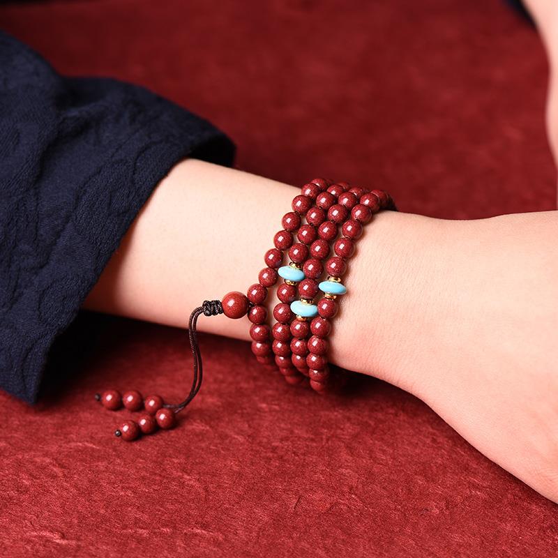 Cinnabar hand string multi-circle 108 beads hand Li female purple gold sand transfer bead necklace national style accessories