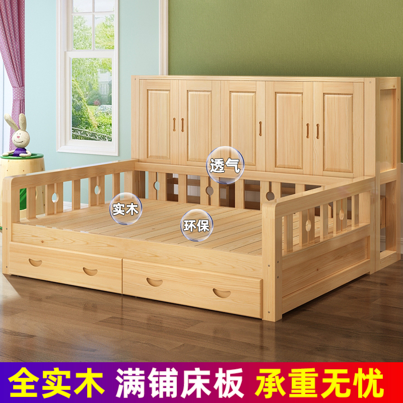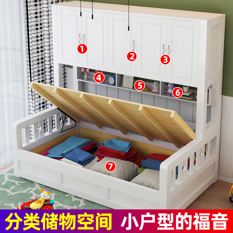 Solid wood children's bed with cabinet multi-functional storage bed combination small apartment space-saving tatami wardrobe bed all-in-one bed
