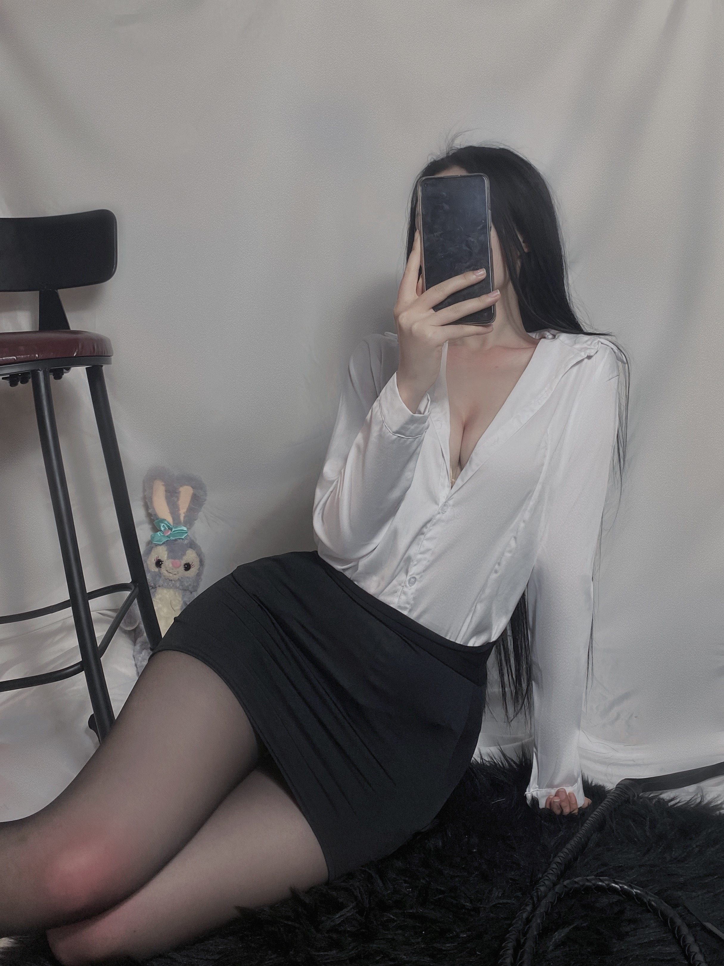 Blouses short skirt tie blouse short skirt tie even body open gear silk stockings