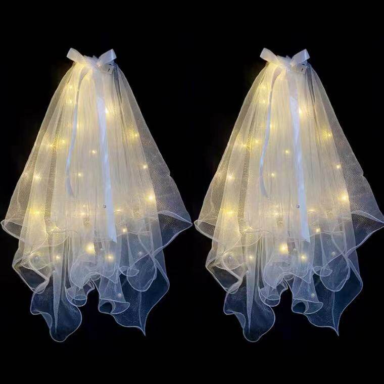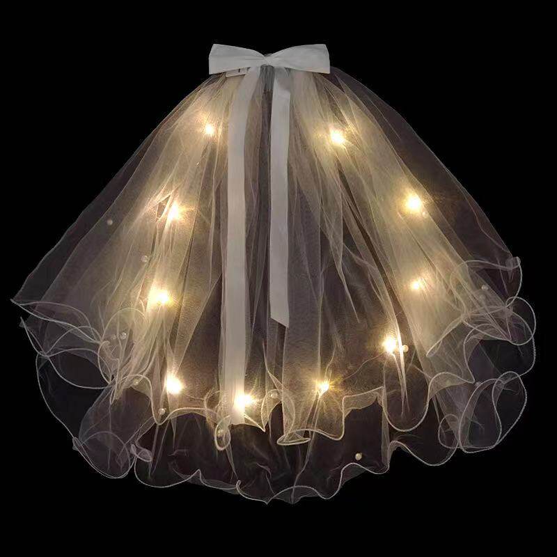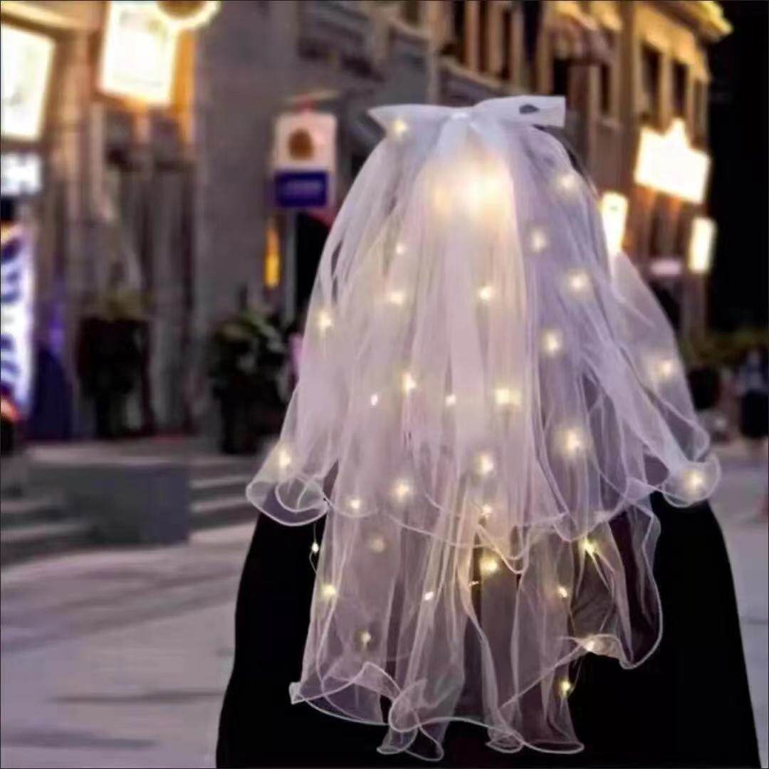 Net red luminous yarn with lamp holder yarn headdress Super fairy Sen department photo props White wedding certificate bow shaking sound