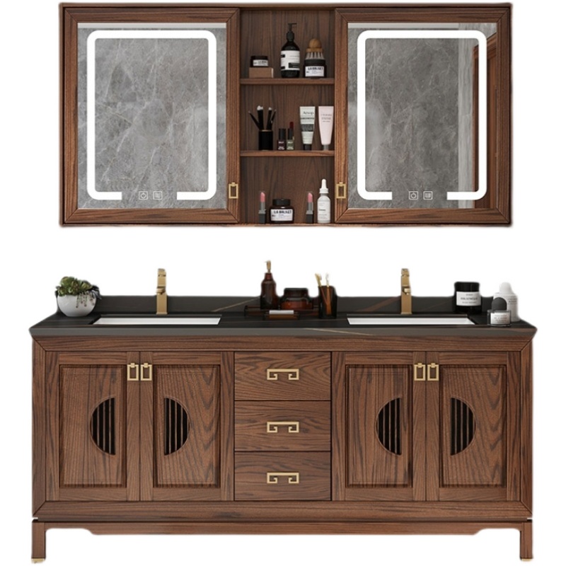 New Chinese bathroom cabinet combination double toilet solid wood red oak hand wash face Basin bathroom cabinet wash table double basin