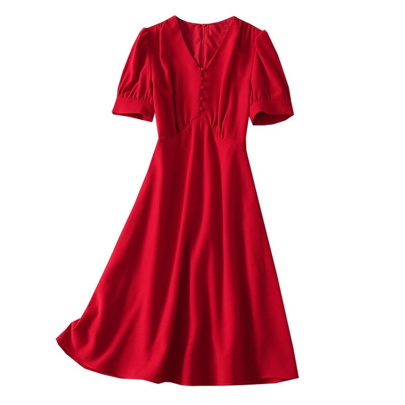 High-end summer clothing star Ni Ni Tongan's red one-piece dress Women's summer new minimalist Temperament Style Balloon Skirt-Taobao