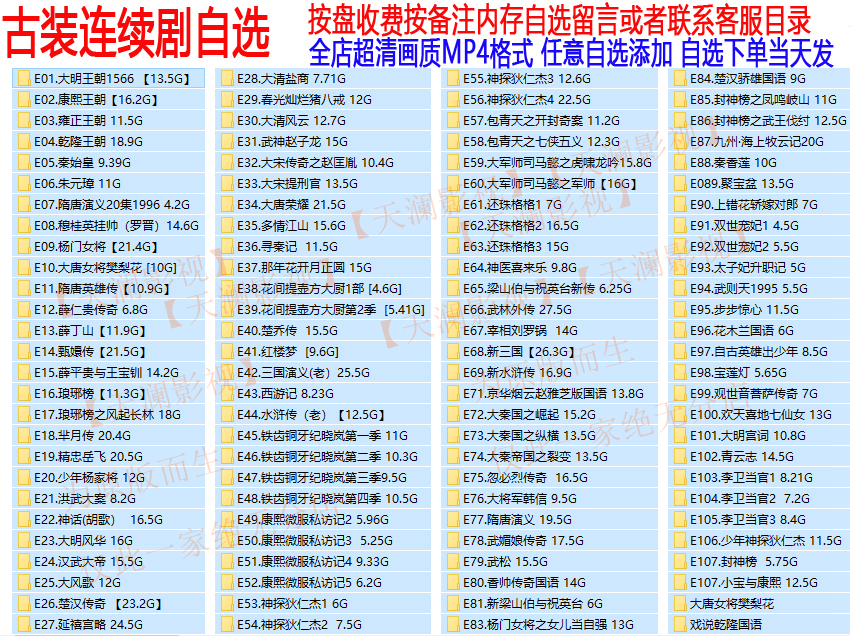 64G Inspirational Series64g Selected costume Series64g Four Famous SERIES64G Martial Arts Series128g Selected Family Series128g Classic Period Series12