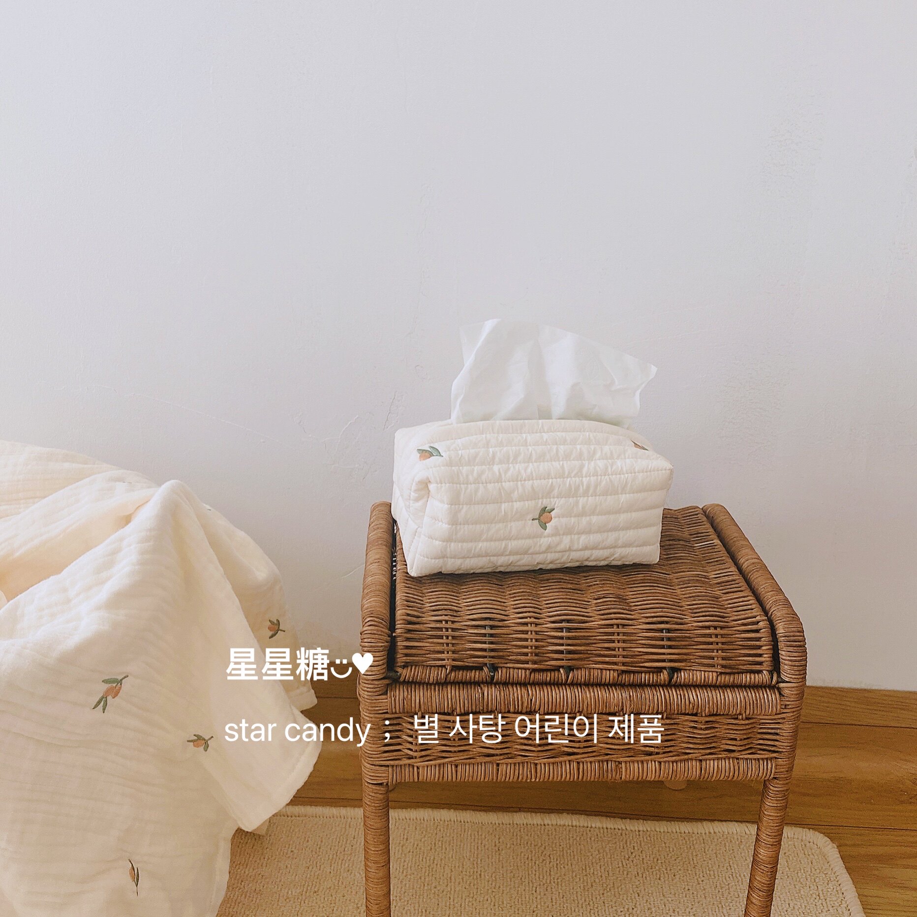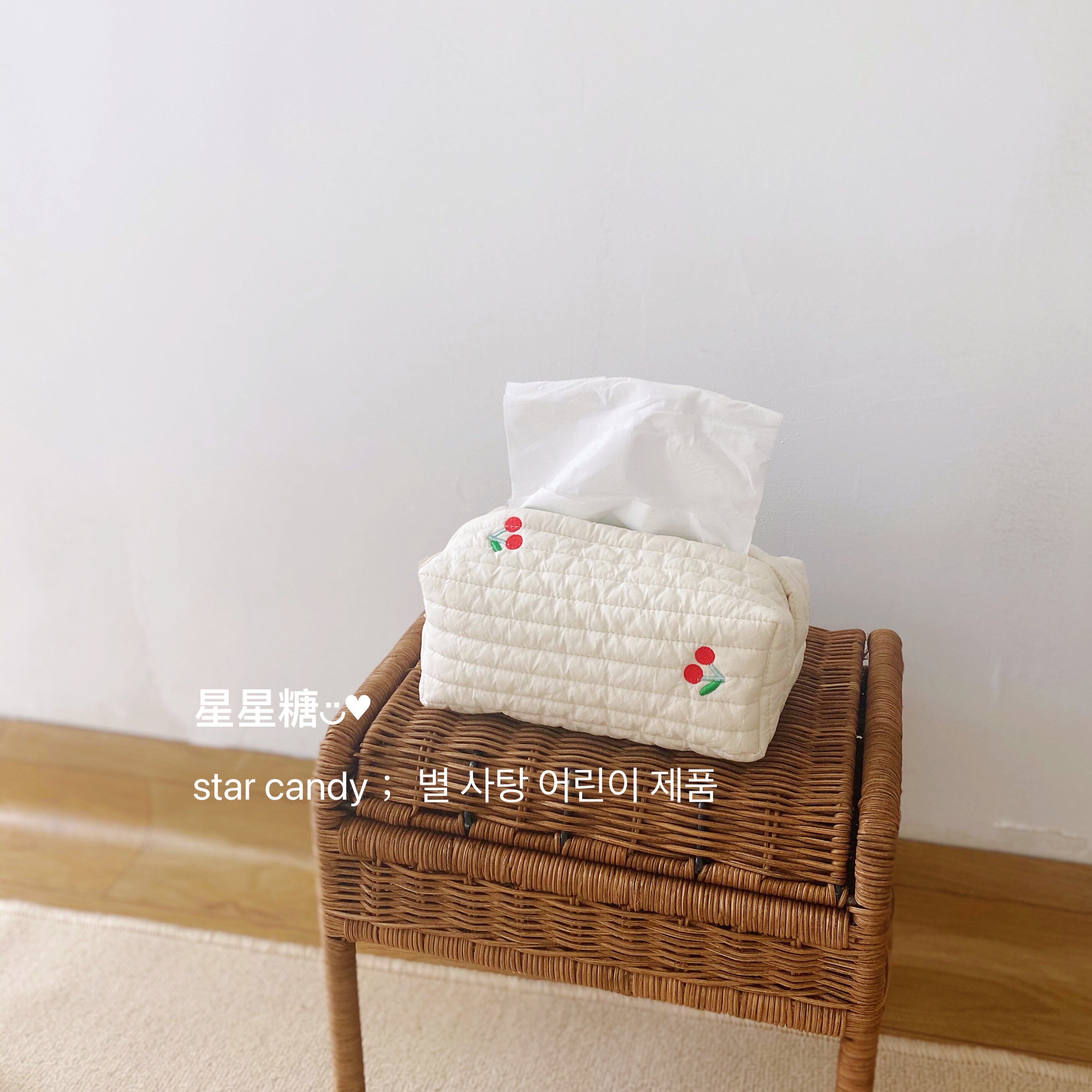 nalinaki Korean ins cotton quilted tissue box cute cherry embroidery bedroom desktop storage drawer box