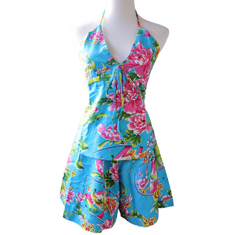 Booby-trapped woman adult pure cotton Northeastern big flower large size sexy underwear can be worn outside pyjamas shorts suit