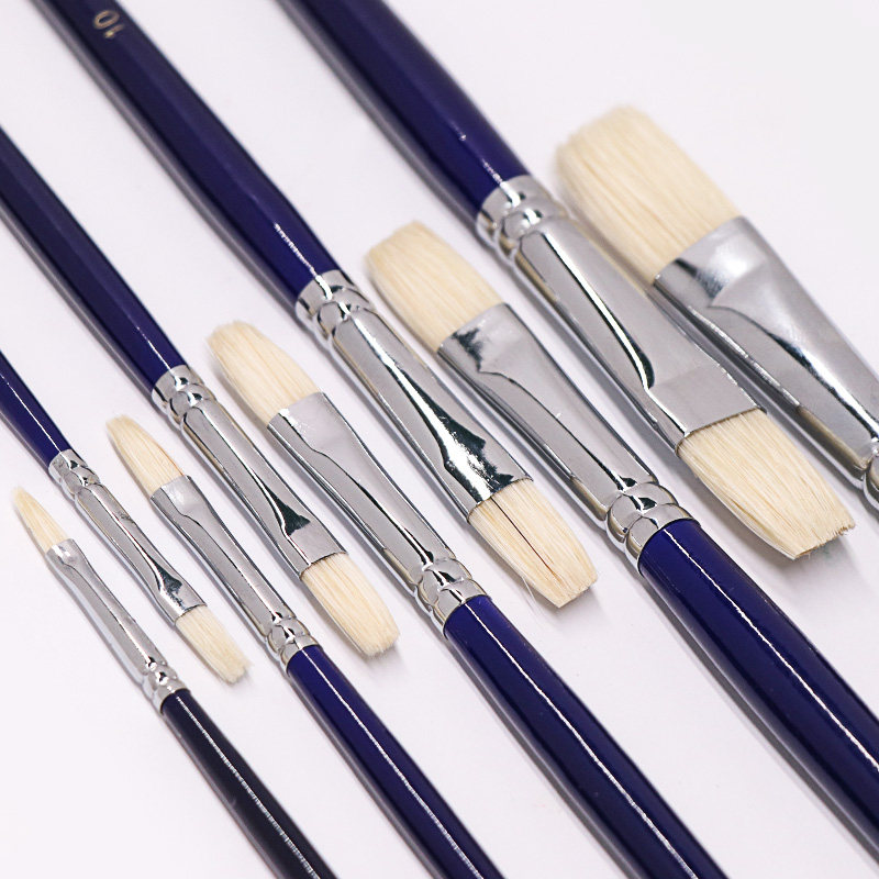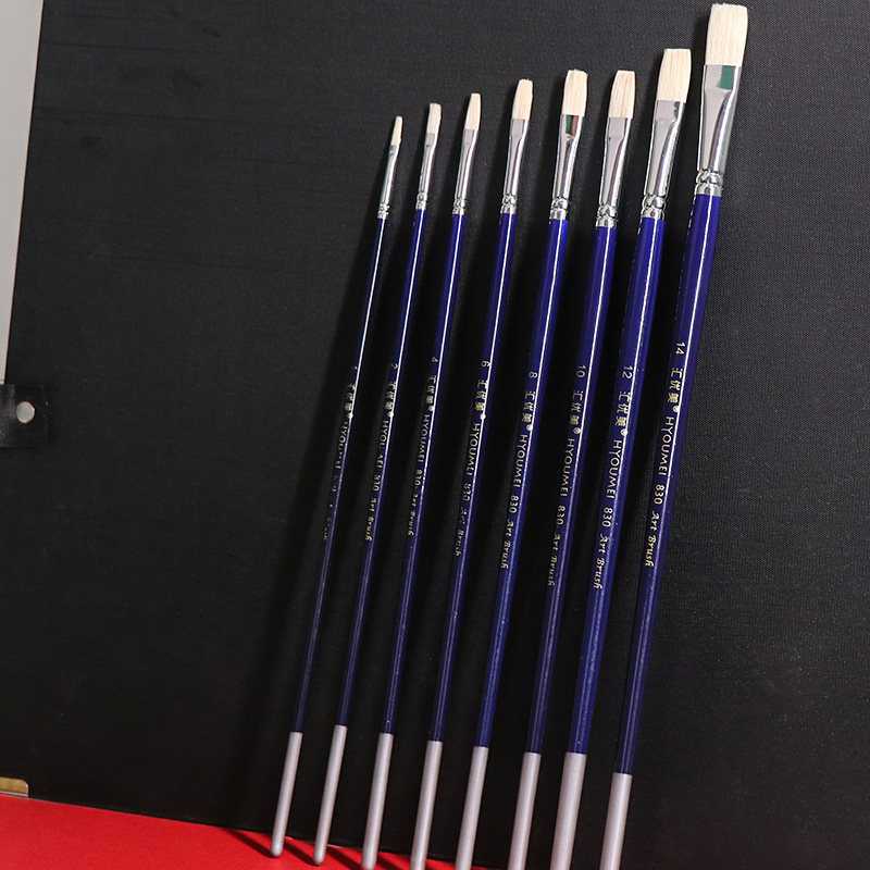 Wire Beautifully 830 Blue Rod Flat Head Pig Mane Long Rod High Bounce Water Powder propylene Oil Painting Professional Creative Arts Painting Pen-Taobao