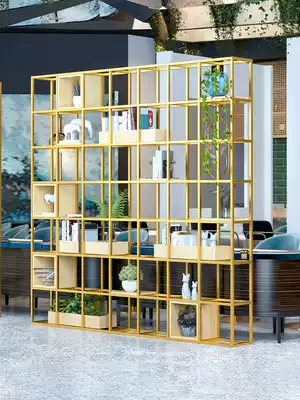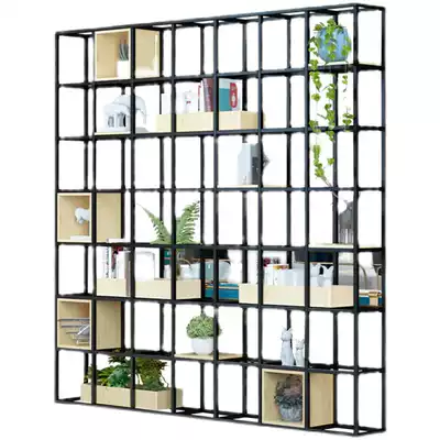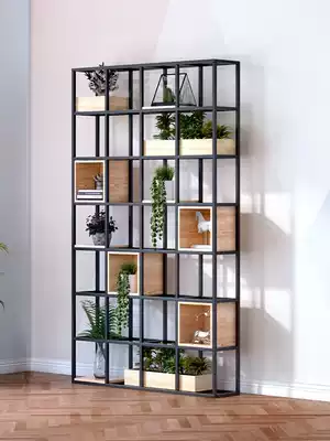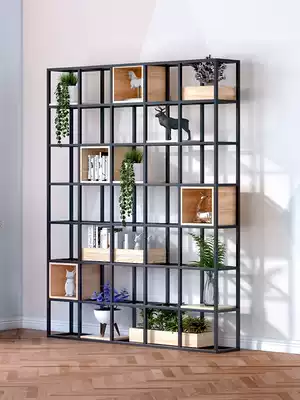 Wrought iron bookshelf storage bookcase floor-to-ceiling solid wood modern simple living room office partition multi-layer display lattice frame