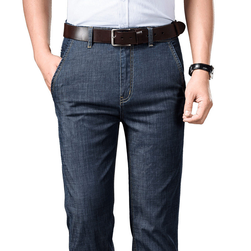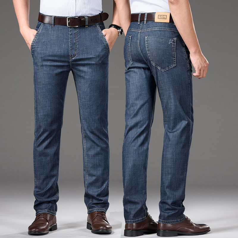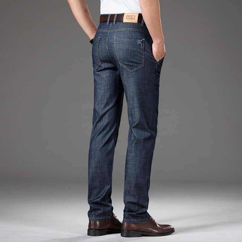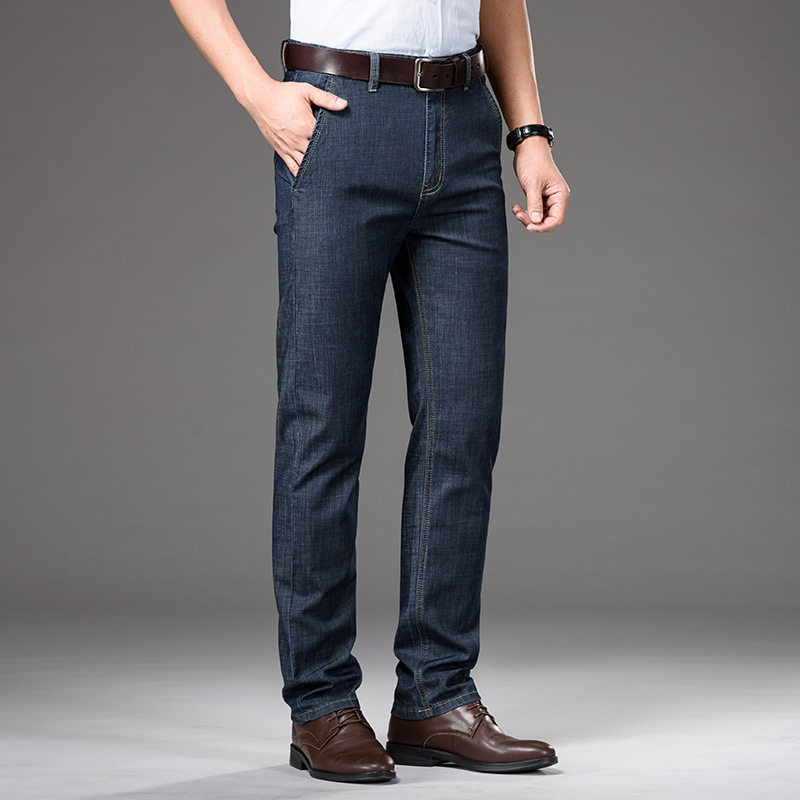 Summer Thin jeans Men's loose straight cylinder High waist Skyline Men's Ice Middle-aged Men Pants Business Dad Pants
