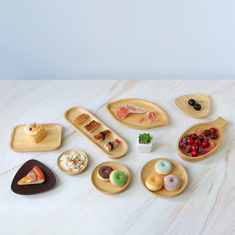 Wooden Pallets Rectangular Day-Style Cutlery Solid Wood Plate Round Fruit Tray Barbecue Dish Wooden Dinner Plate Home-Taobao