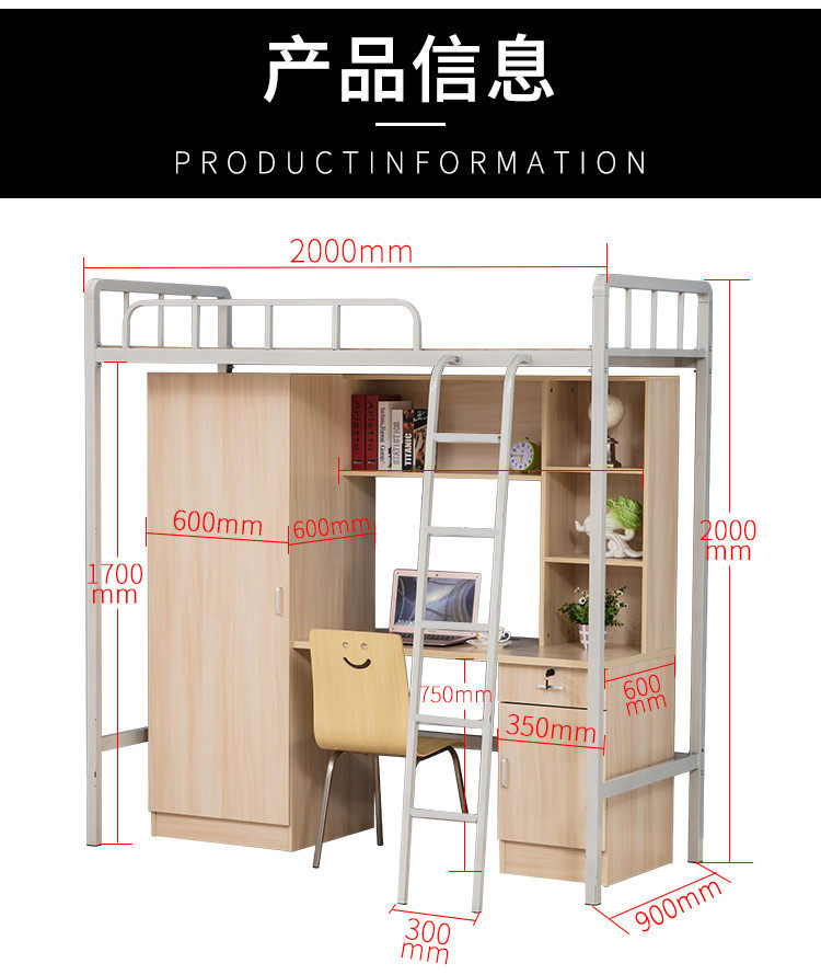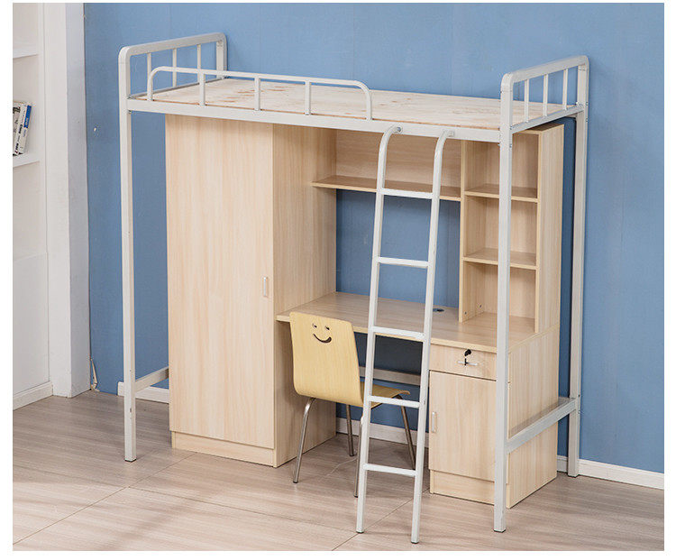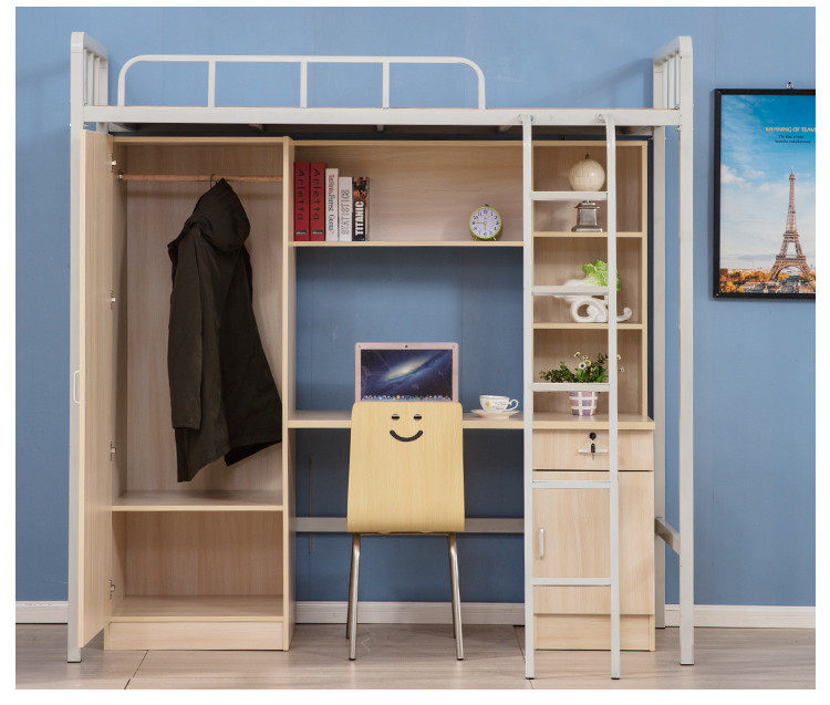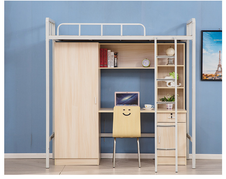 School student dormitories to bed lower table minimalist staff iron art bed linen apartment bed head cabinet integrated high and low steel frame bed