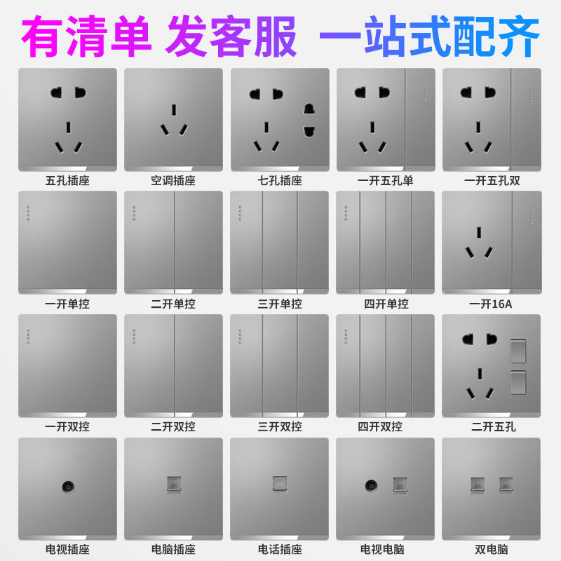 International electrician gray large board switch socket panel 86 type concealed household wall one open five-hole USB power supply 5