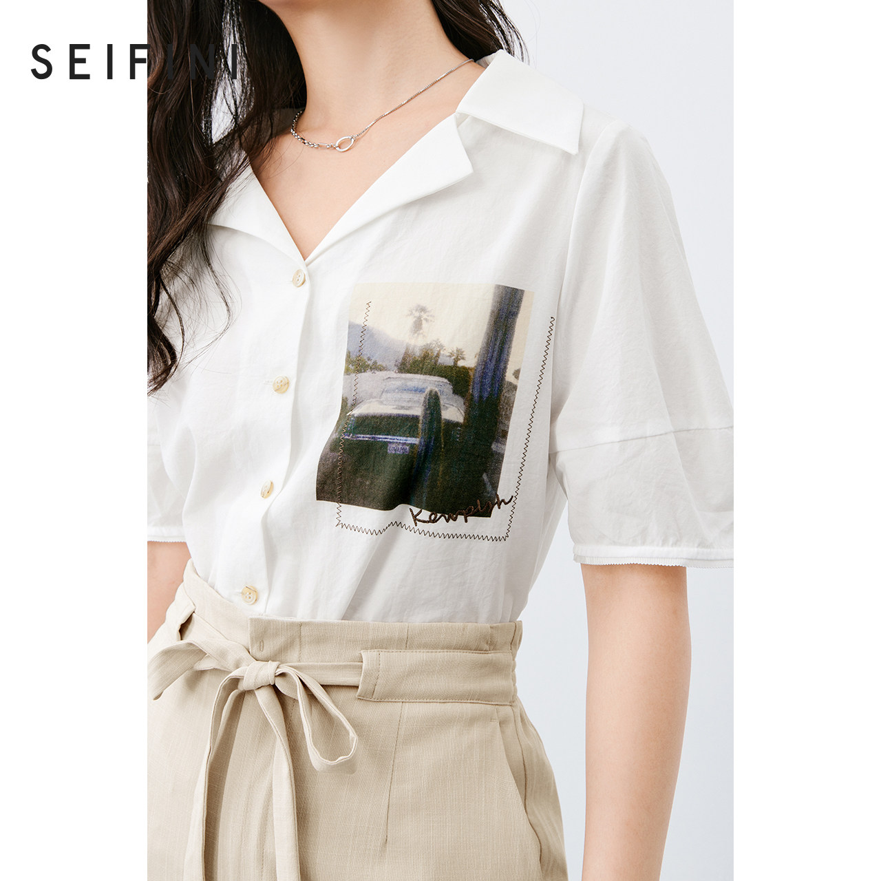 Mall Identical Poetry Fan Shirts Women Spring 2022 New White Printed Snowspinning Shirts 3C5325801