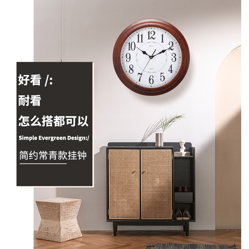 Yisen Living room red oak solid wood hanging bell modern minimalist bedroom quartz watch mute Chinese clock Eurostyle hanging watch