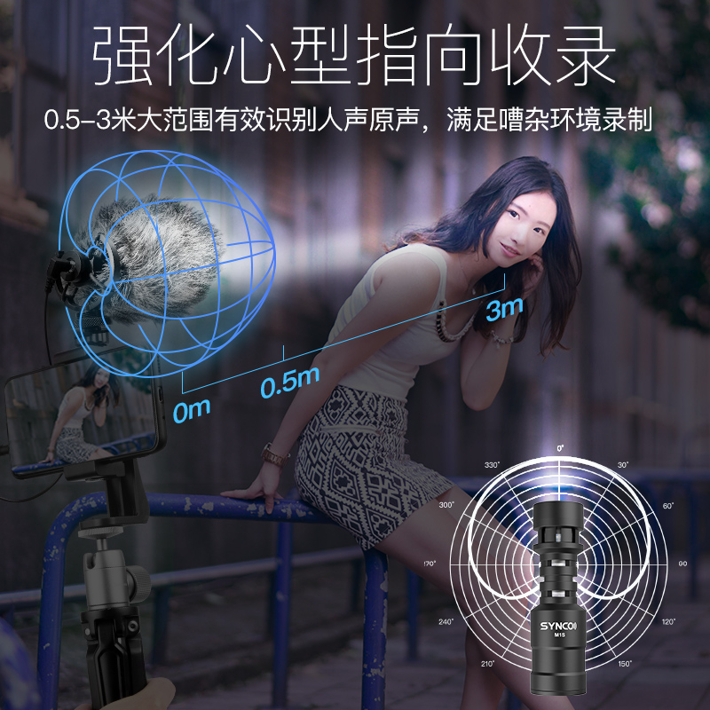 SYNCO Bongke M1S Mobile Phone Noise Reduction Microphone Microphone Camera Monocular Micro Monocular Camera Interview Vlog Short Video Eat Broadcast Live Recording Equipment Directivity Radio