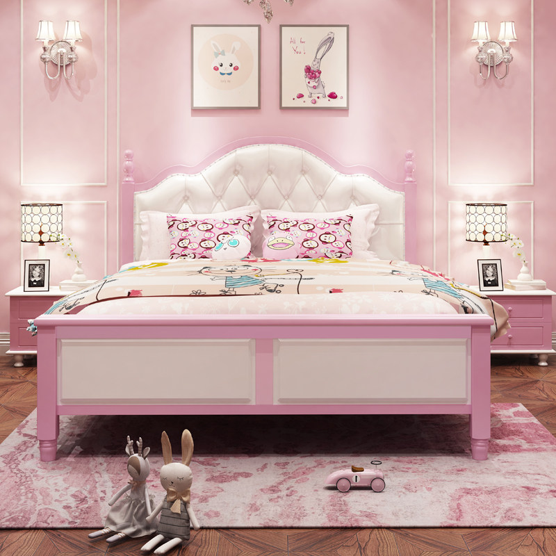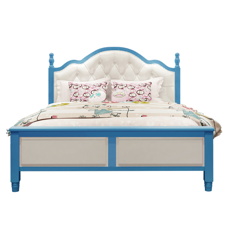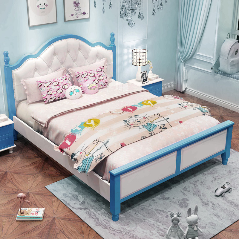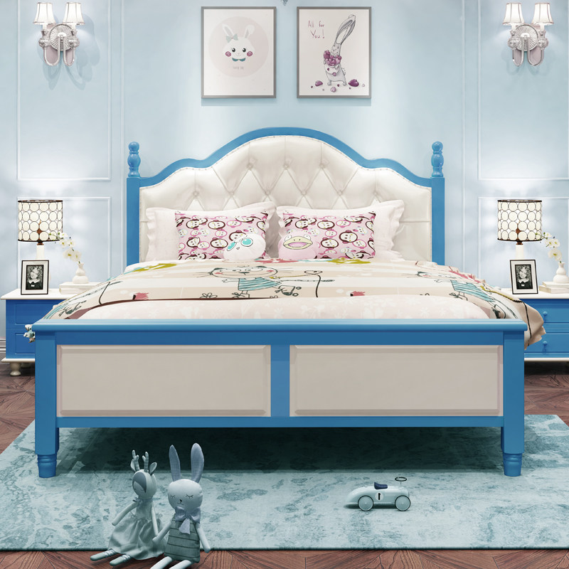 Solid wood children's bed boy teenager single bed white blue girl double bed 1 5m1 8m soft leather