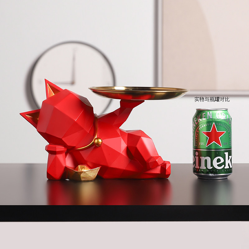 Simple light luxury modern lucky cat tray porch key storage ornaments home living room office table decorations