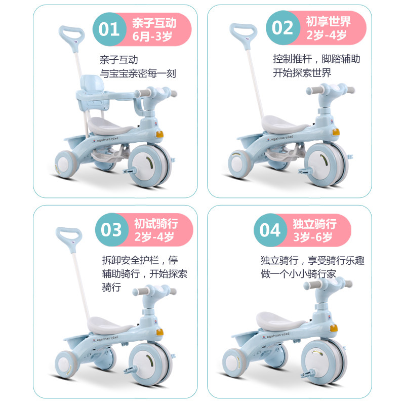 Children's multi-functional three-wheeled trolley Child baby baby toddler pedal with fence pusher can be pushed and cycled