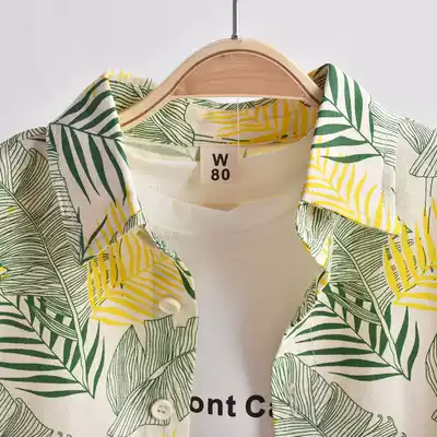Summer resort style children's shirt boys 2021 new boys thin flower shirt sunscreen clothing cotton breathable