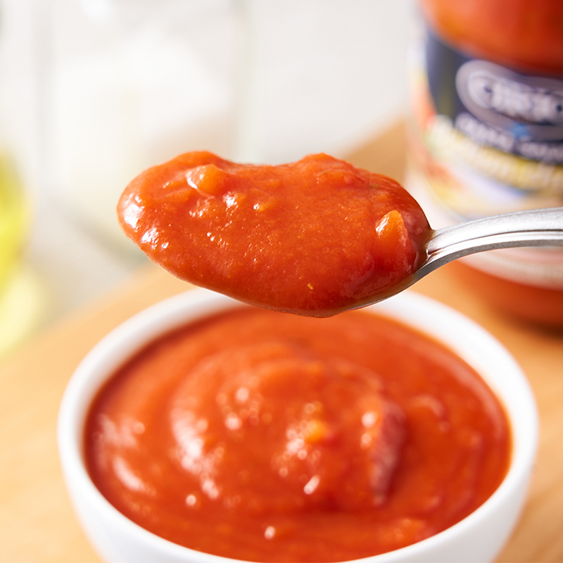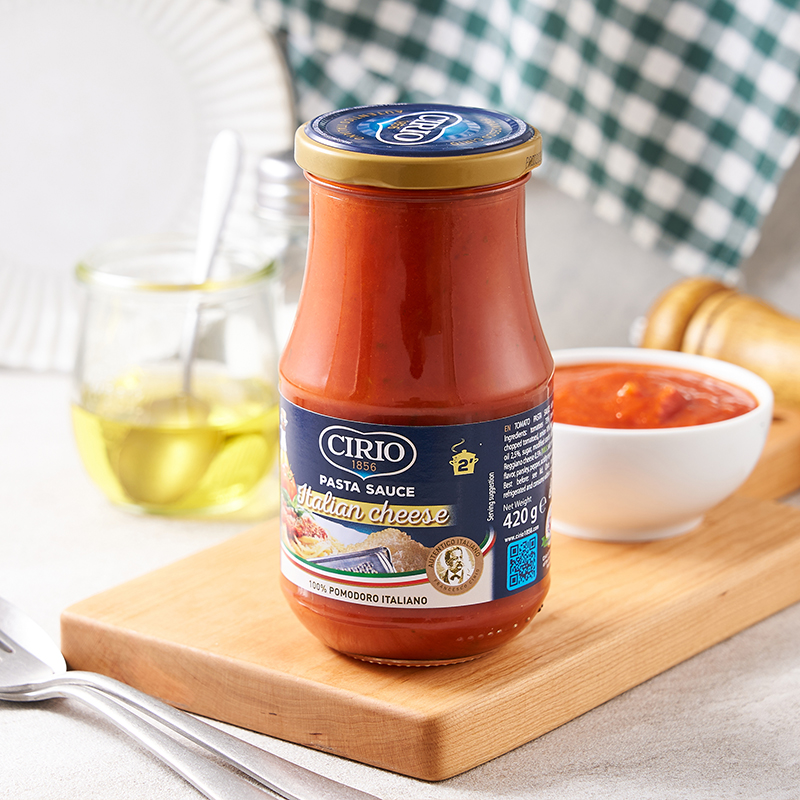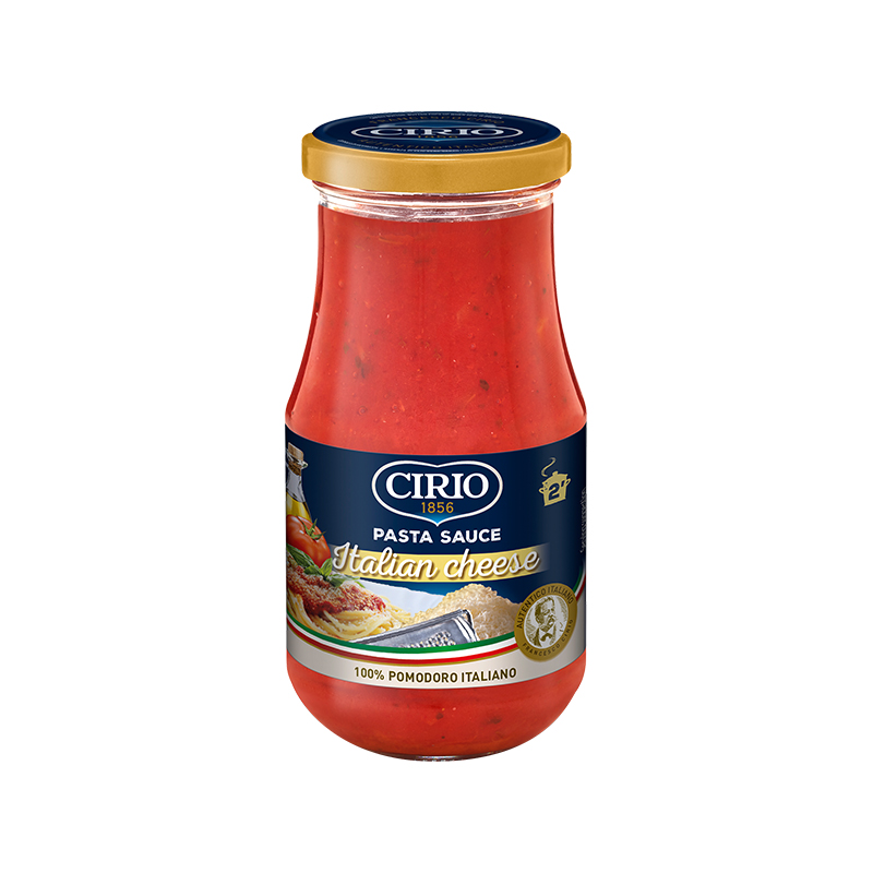 Cheese flavored Italian pasta sauce with a pasta sauce