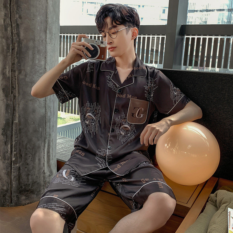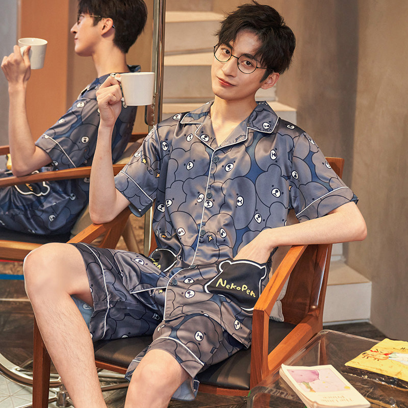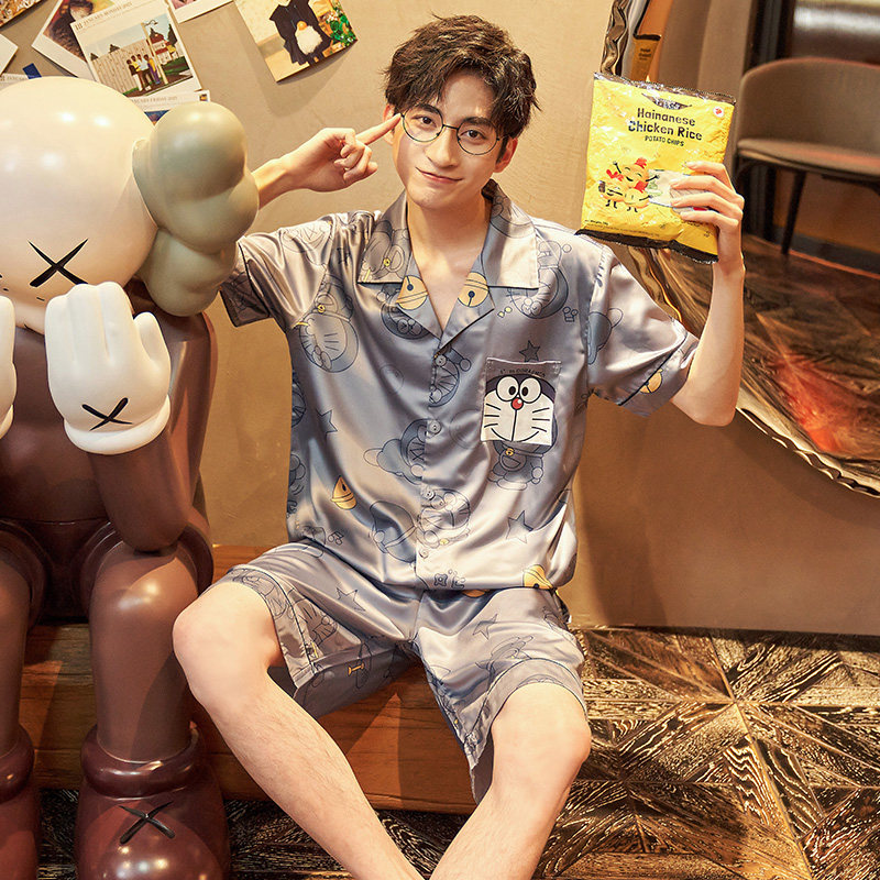Men's pajamas spring and summer ice silk short-sleeved thin section 2021 new cartoon silk summer homewear suit