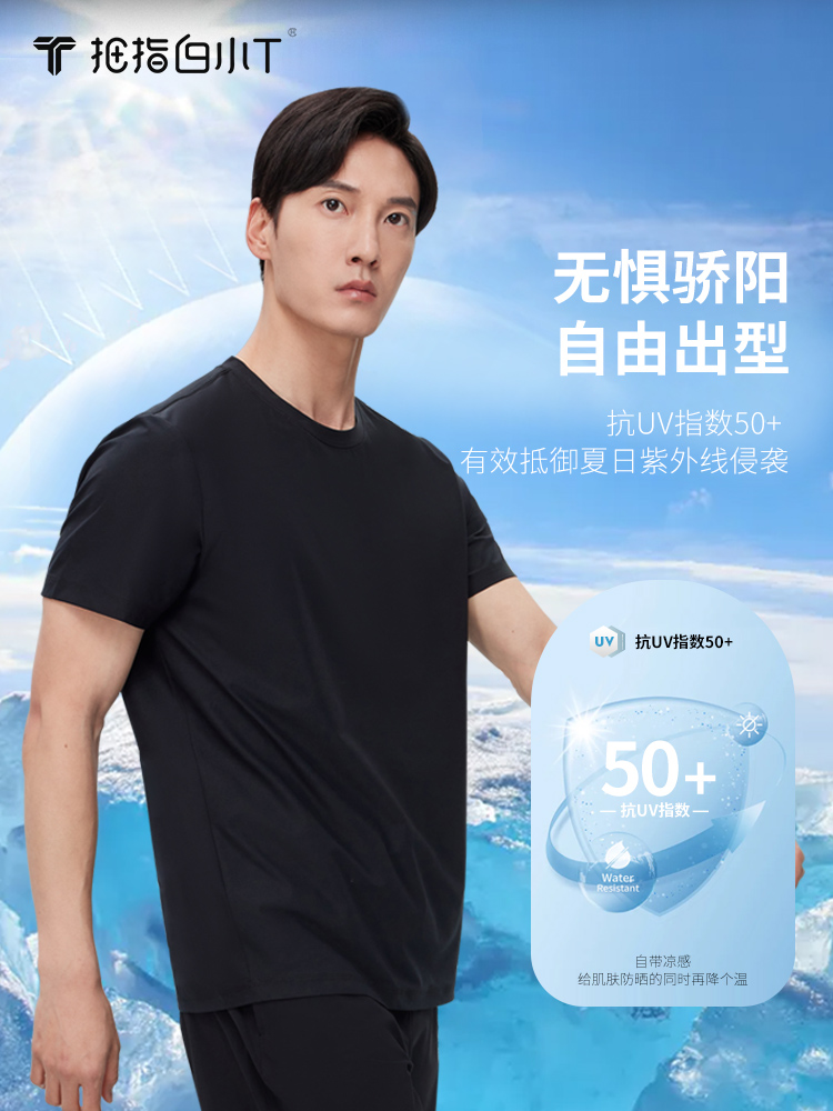 Thumb white T - sleeve T - shirt men 2022 new sports fitness breathable anti - UV round collar speed dry