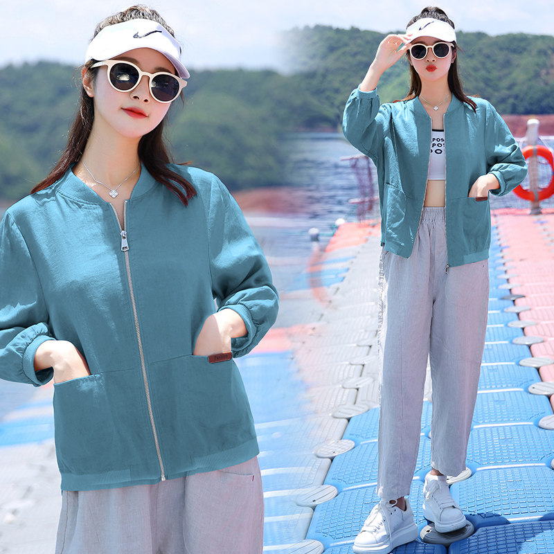Short sunscreen woman 2022 Summer new anti-UV breathable ultra-thin long sleeve cardiovert jacket sunscreen