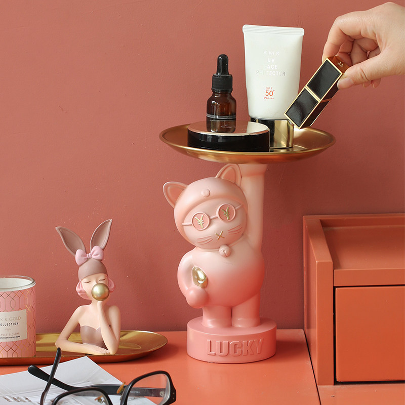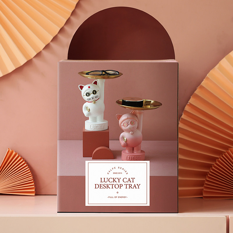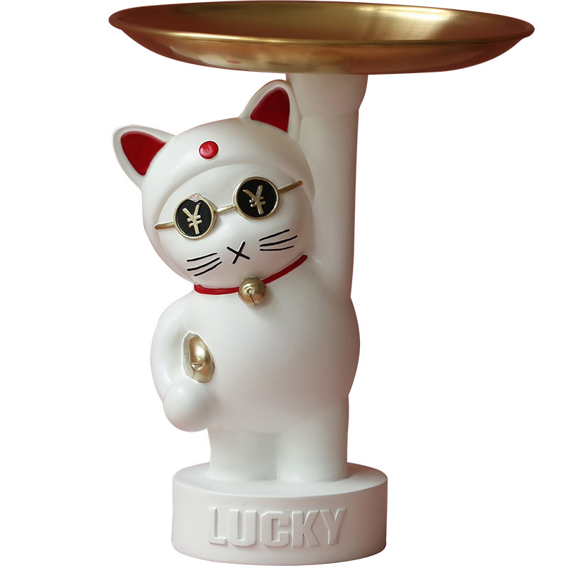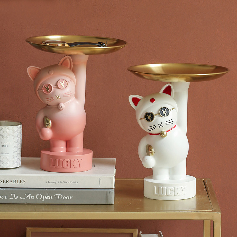 Mizi Home Lucky Cat Entering the Home Entrance Key Tray Storage Ornament Living Room Home Decorations Housewarming Gift