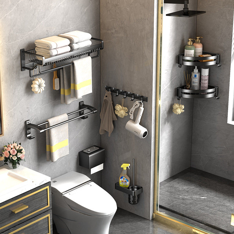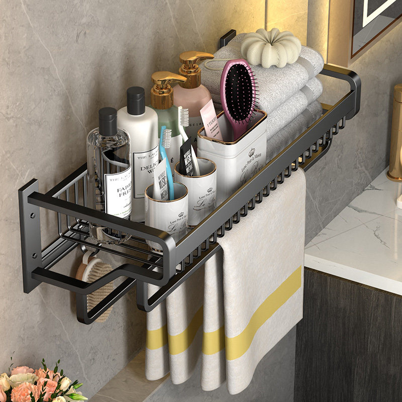 Bathroom hair towel rack free of punching light and luxurious Makeup Compartment Shelving clothes Shelves Wall-mounted Space Aluminum Bath Towels