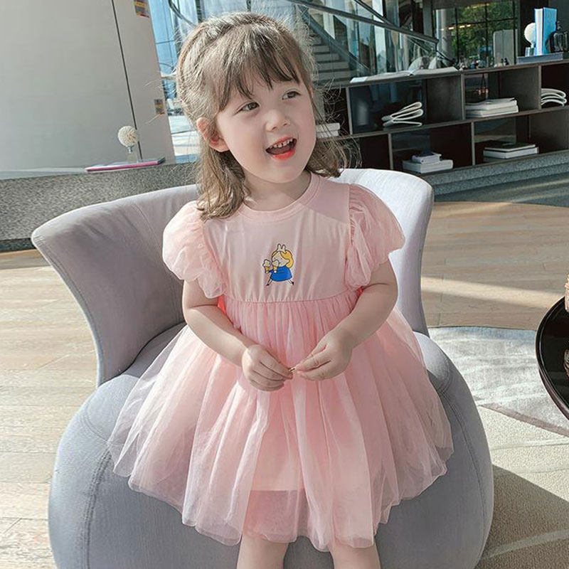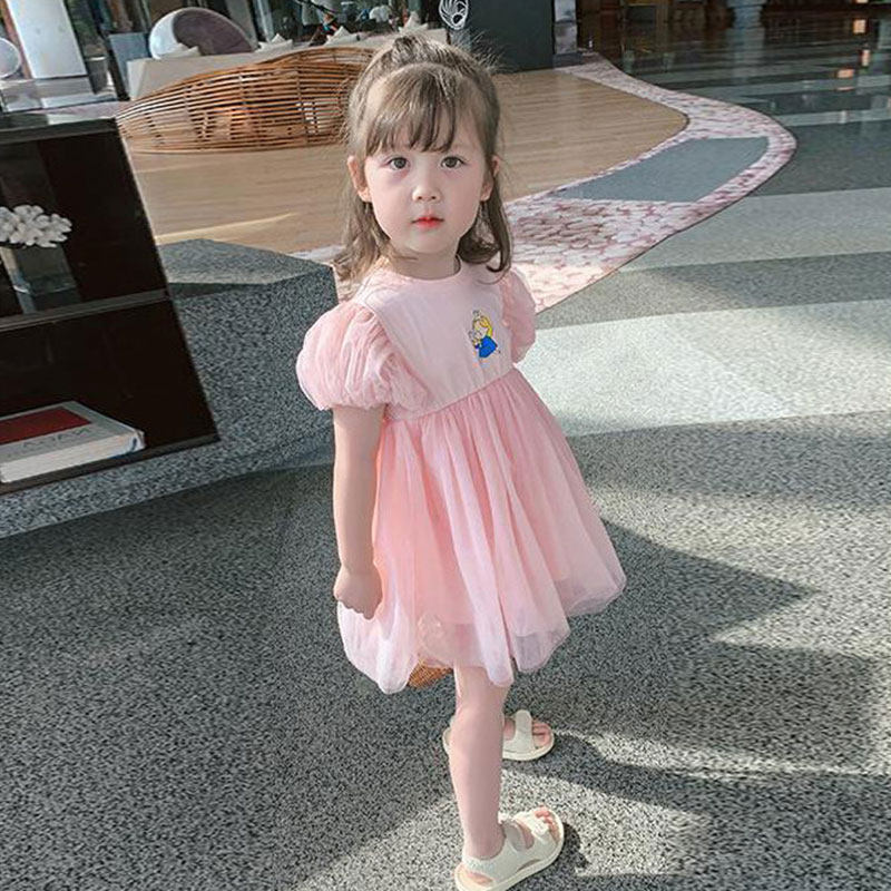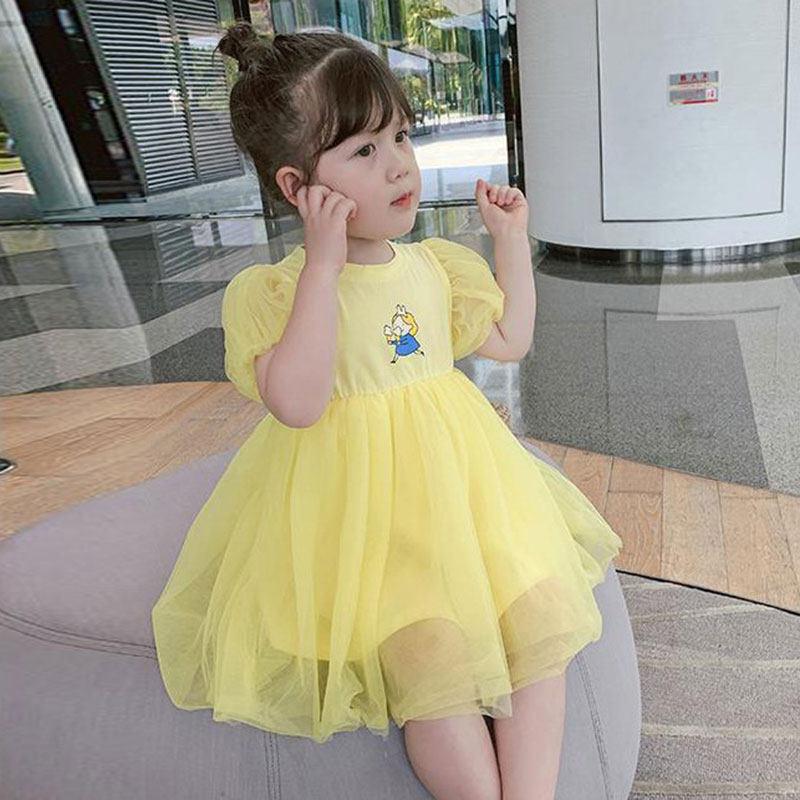 Girls Bubble Sleeve Dress 2022 New Baby Summer Dress Dress Children Han - Edition Cartoon Dress