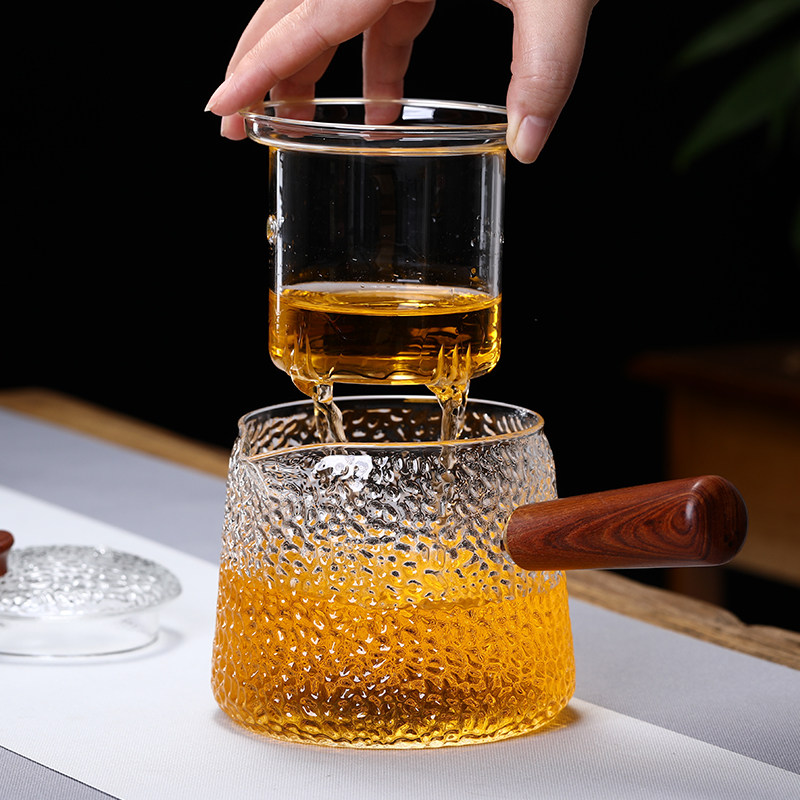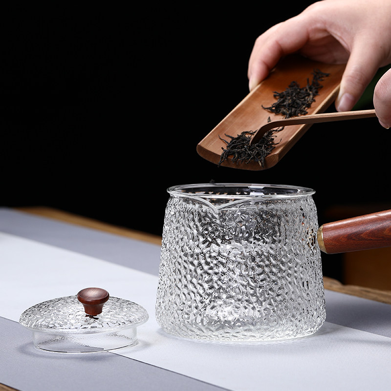 Glass cooking teapot side with high temperature resistant bubble teapot black crystal stove cooking tea wares Home burning kettle thickened glass tea set