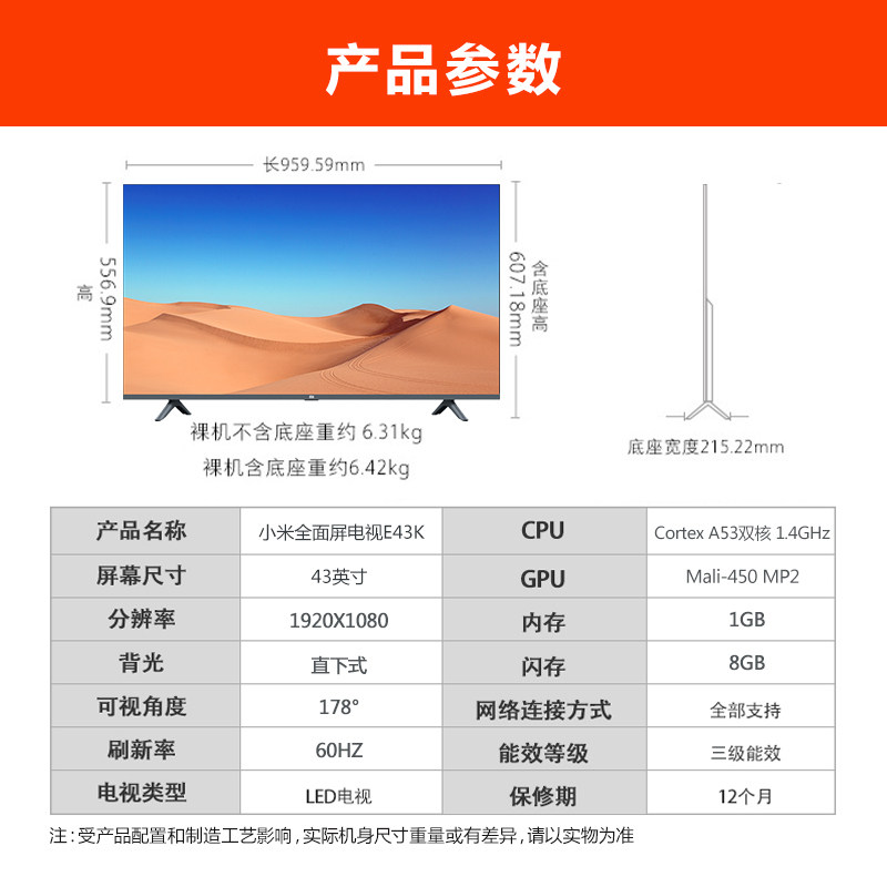 Xiaomi TV 43 inch 2022 EA43 Ultra HD intelligent full screen LCD Network flat panel TV ES43