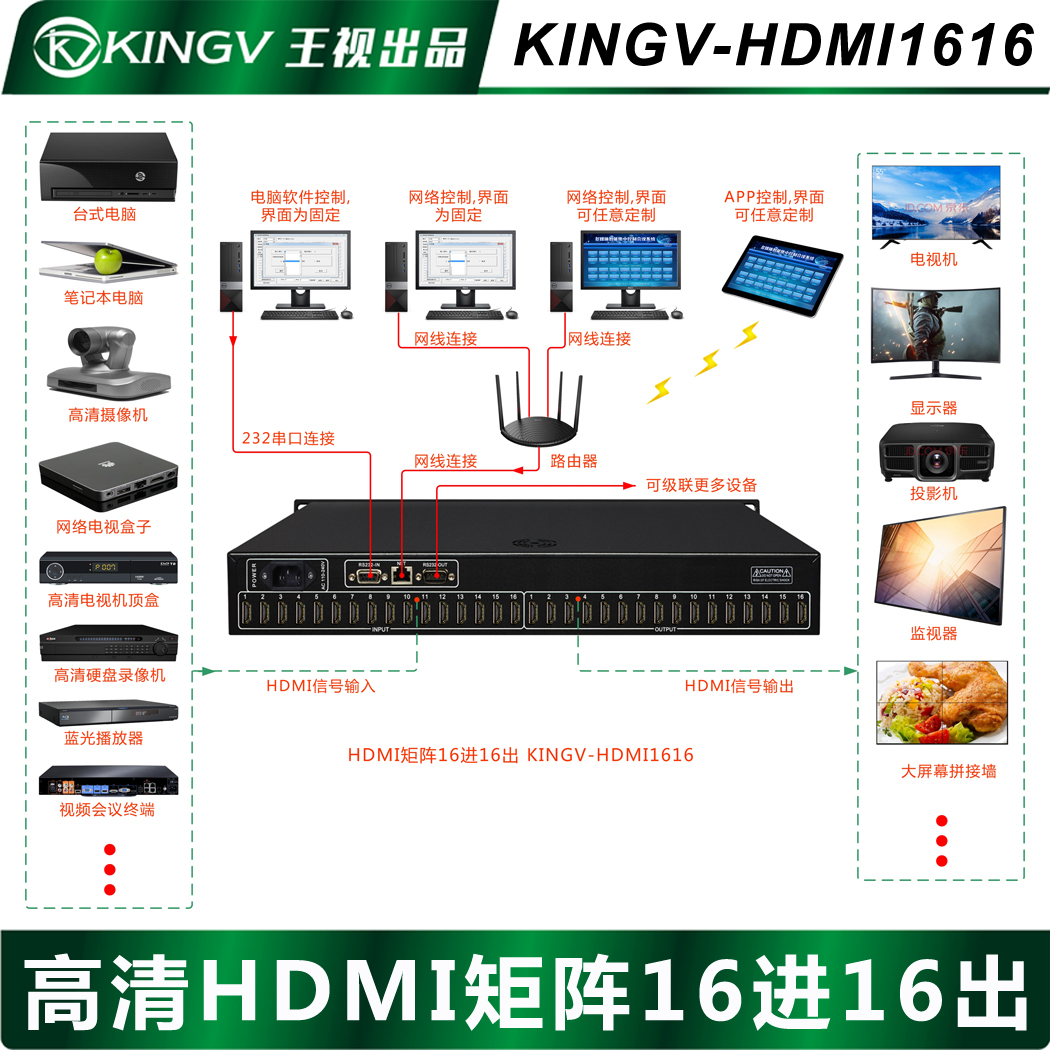 HDMI matrix 16 in 16 out switcher HD audio and video surveillance large screen splicing APP serial port network Wang TV