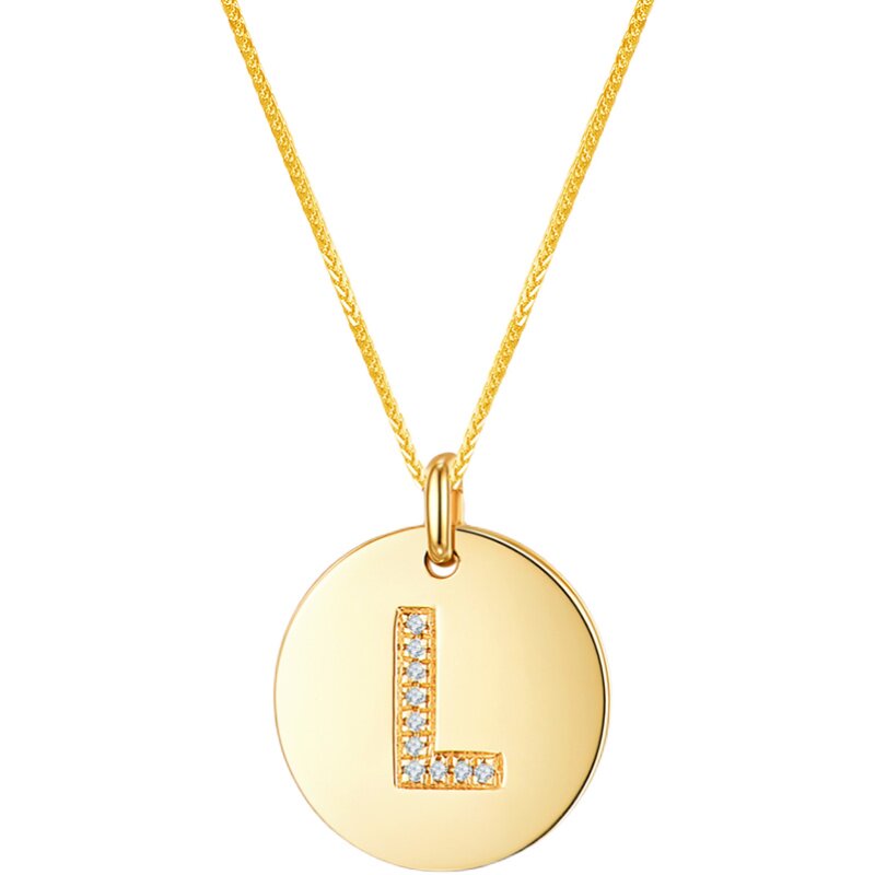 18K gold natural diamond round plate letter pendant necklace clavicle chain set chain retro gold coin ins wind gold stacking