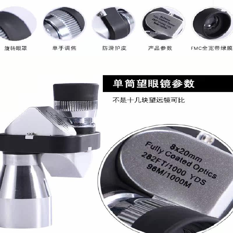 8x20 Corner Telescope Single Cylinder High-fold HD Microlight Night Vision pocket Mini Child Non-infrared Looking Glass