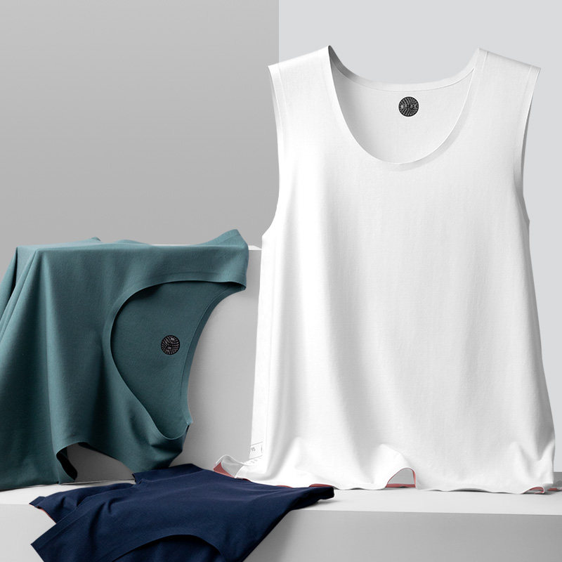2 fitting Modale No marks for men wide shoulder white vest Summer cool Ice Silk Thin outside wearing sleeveless vests