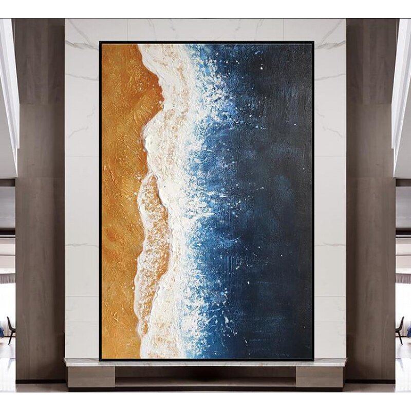 Hand-painted porch decoration painting abstract sunshine beach vertical version light luxury living room restaurant aisle modern minimalist oil painting