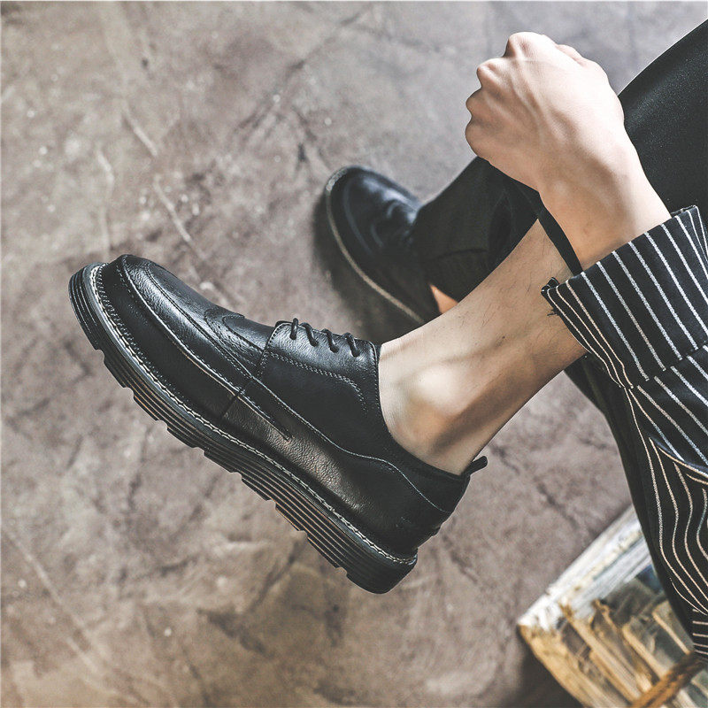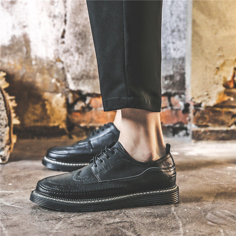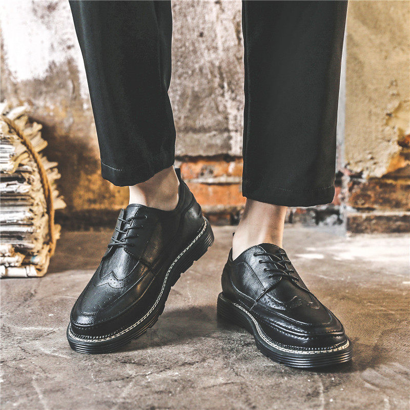 Summer black brogue small leather shoes men's Korean version trend British business casual breathable with suit leather shoes men