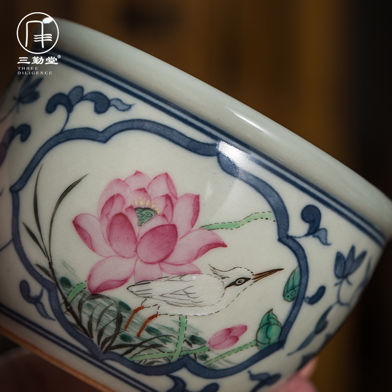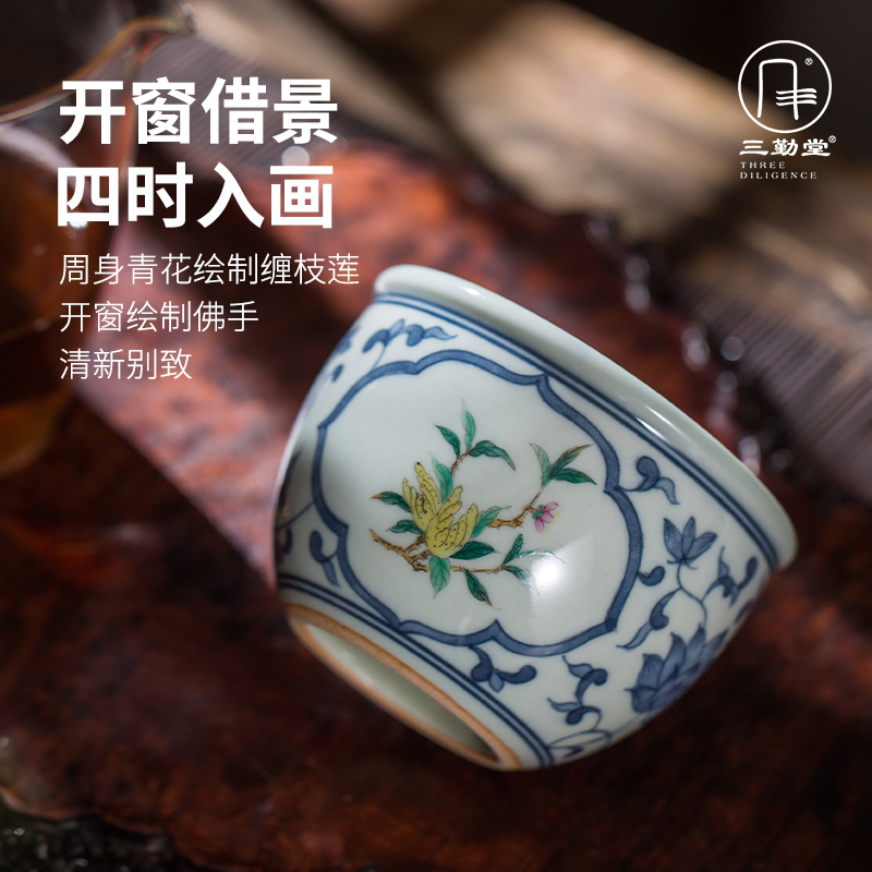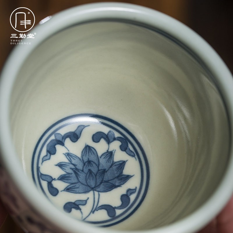 Sanqintang tea cup Jingdezhen ceramic kung fu tea set teacup hand-painted blue and white master single cup Pu'er white teacup