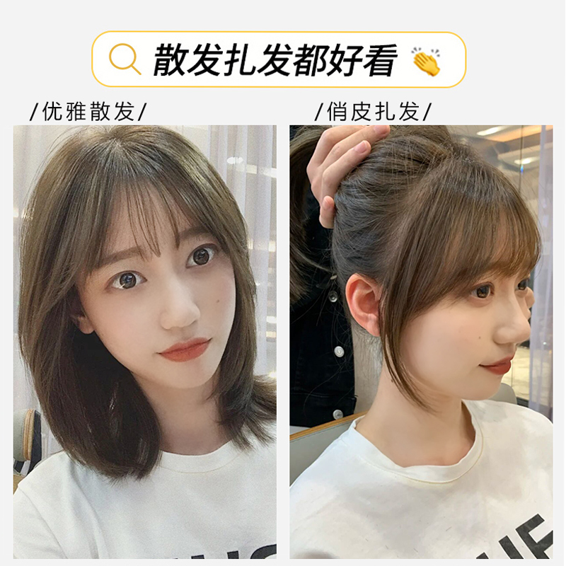 Wig piece female head hair one piece type real hair hair piece cover white hair Thin incognito hair block natural Liuhai summer
