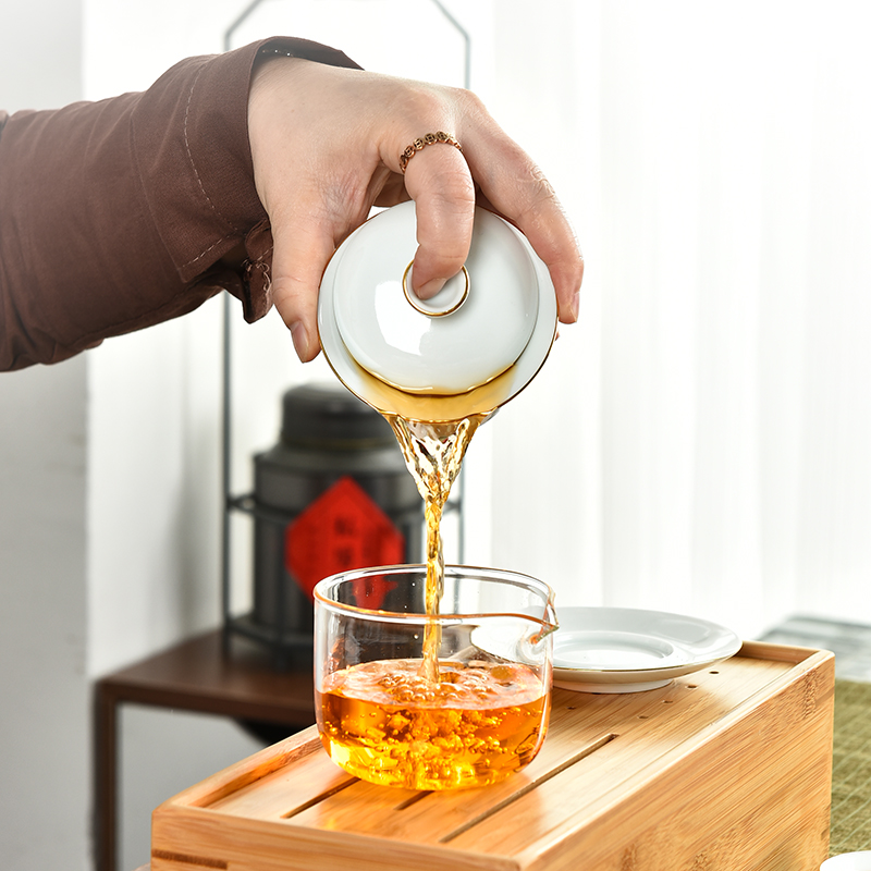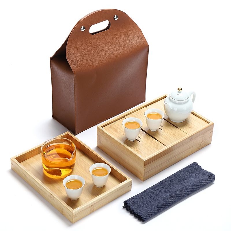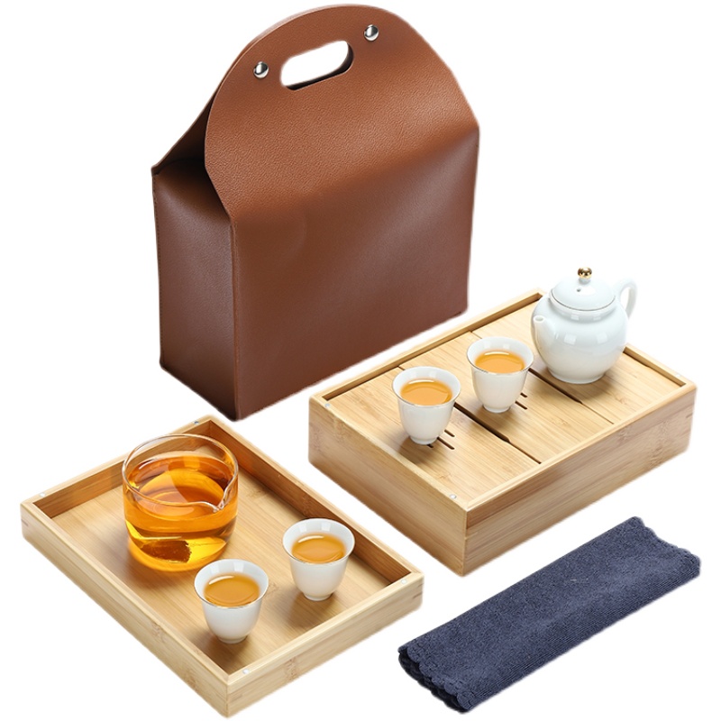 Row Day Travel Tea Set Group Portable Containing Leather Bag Outdoor Home Day Style Brief Teapot Tea Cup Bamboo Tea Tray