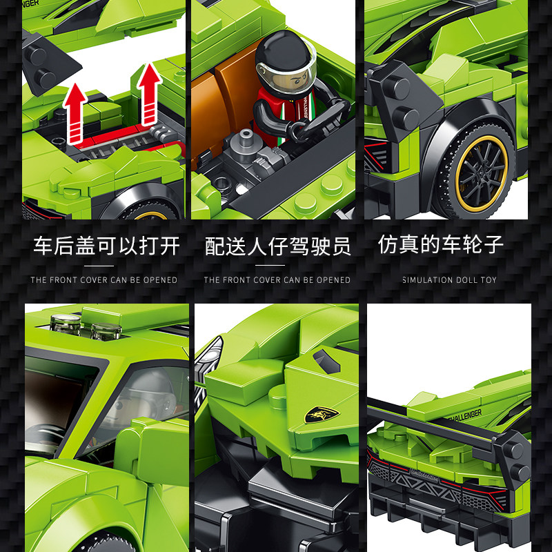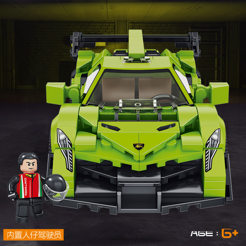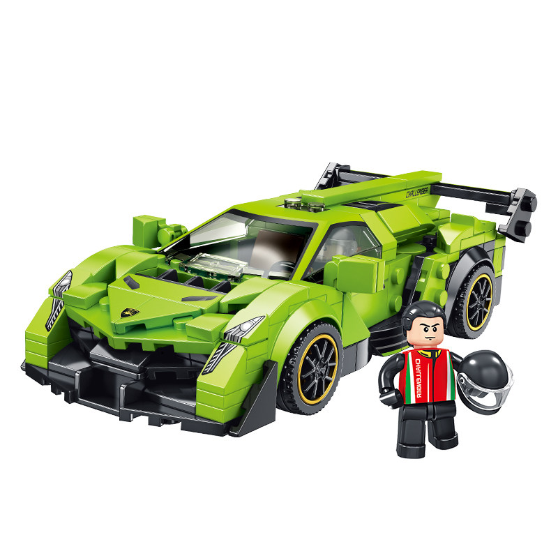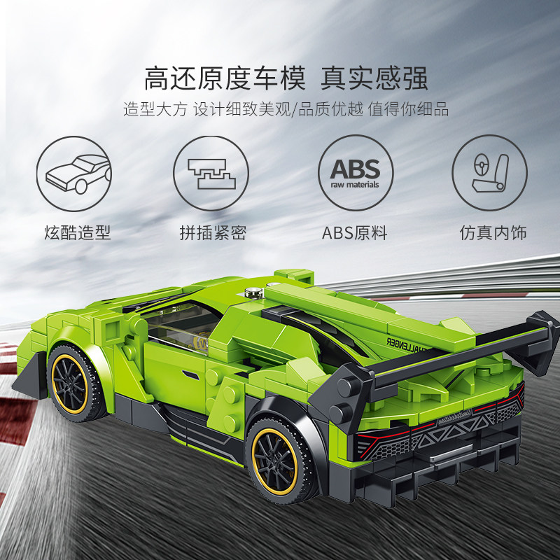 Huda Panlos Blue Treasure Tenney Sports Car Children Building Block Car Assembly Model Puzzle Racing Boy Toy Gift