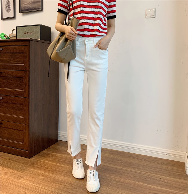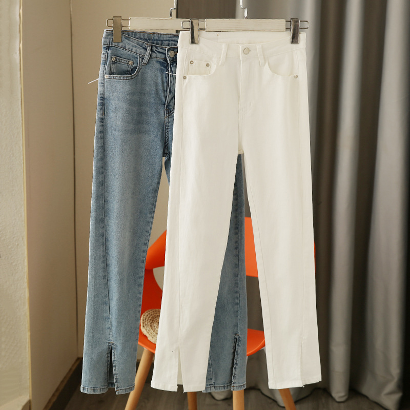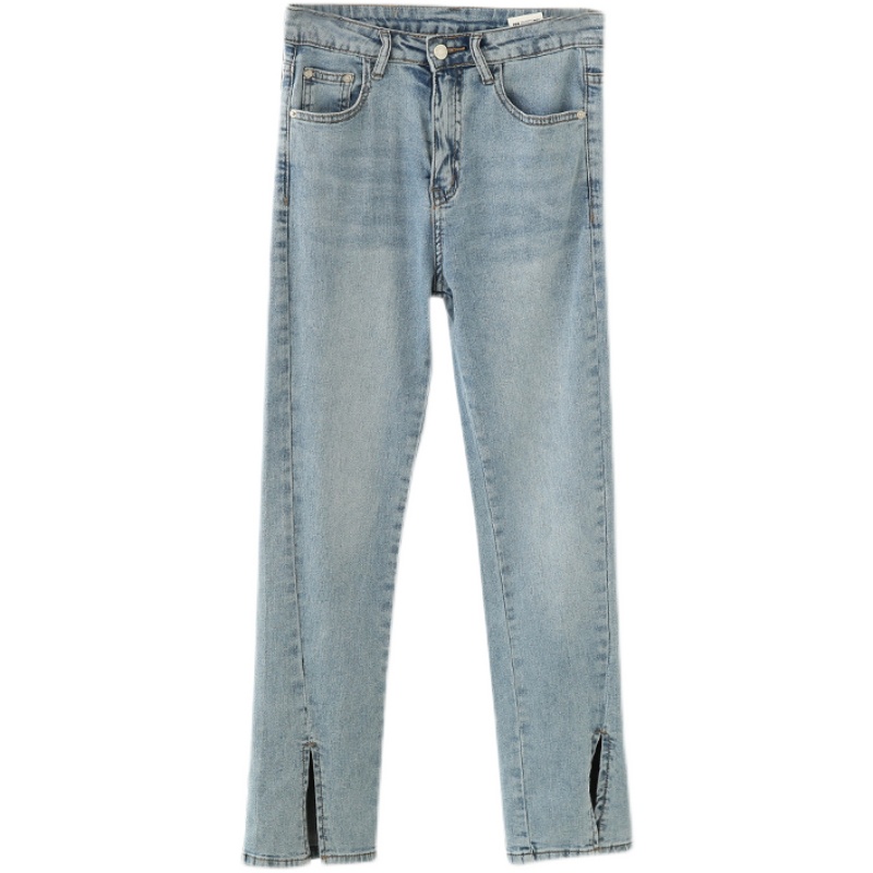 Strength factory shipping version like high-waisted straight tube thin slit nine-point jeans women's summer thin
