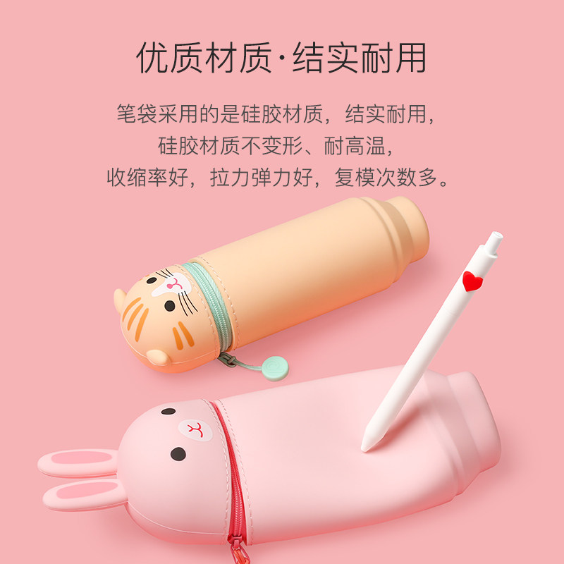 Japanese stationery Lihit Lab Heili pen bag PuniLabo creativity to blame cute cartoon children student pencil case A-7712 large capacity day series of silicone gel pen box men and women