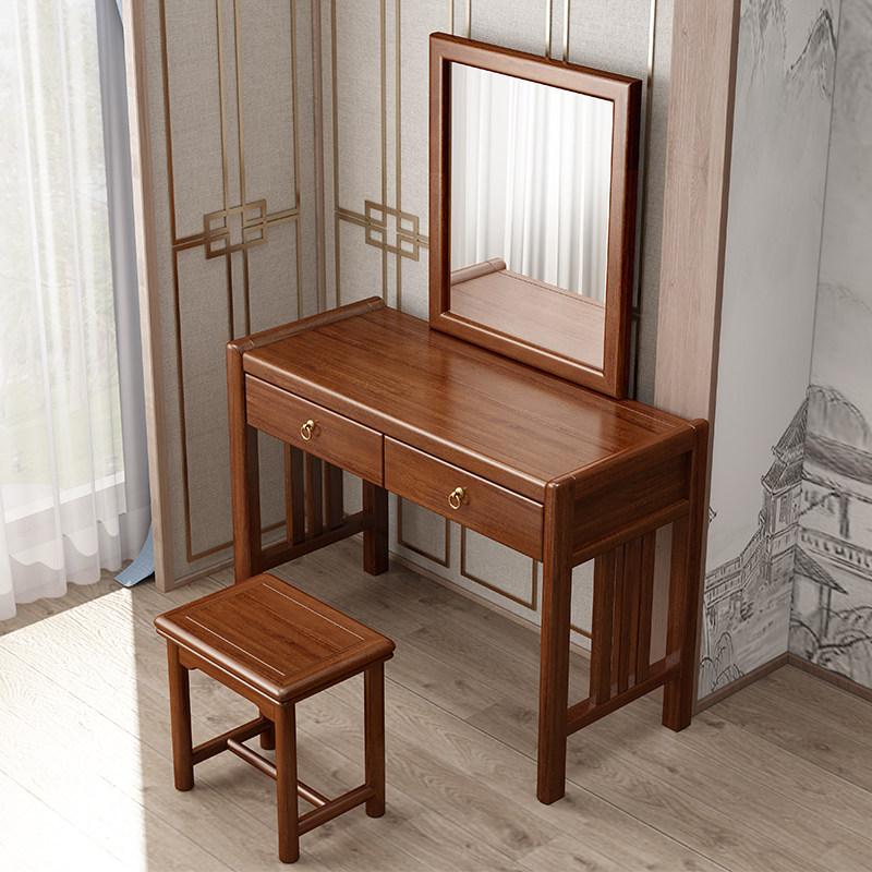 New Chinese Walnuts Wood Solid Wood Makeup Bench Makeup Mirror Bedroom Kit Modern Minimalist Light Lavish Wood Furniture
