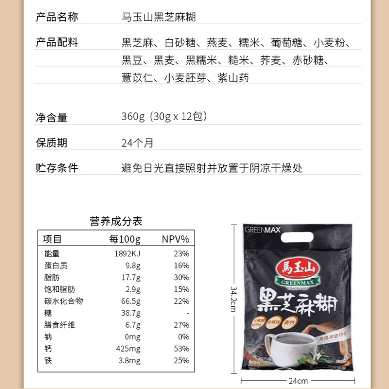 Taiwan Imports Ma Yushan Black Sesame Burnt 360g Small bagged powder Students Children's pregnant women Nutritional Breakfast Small Packaging-Taobao