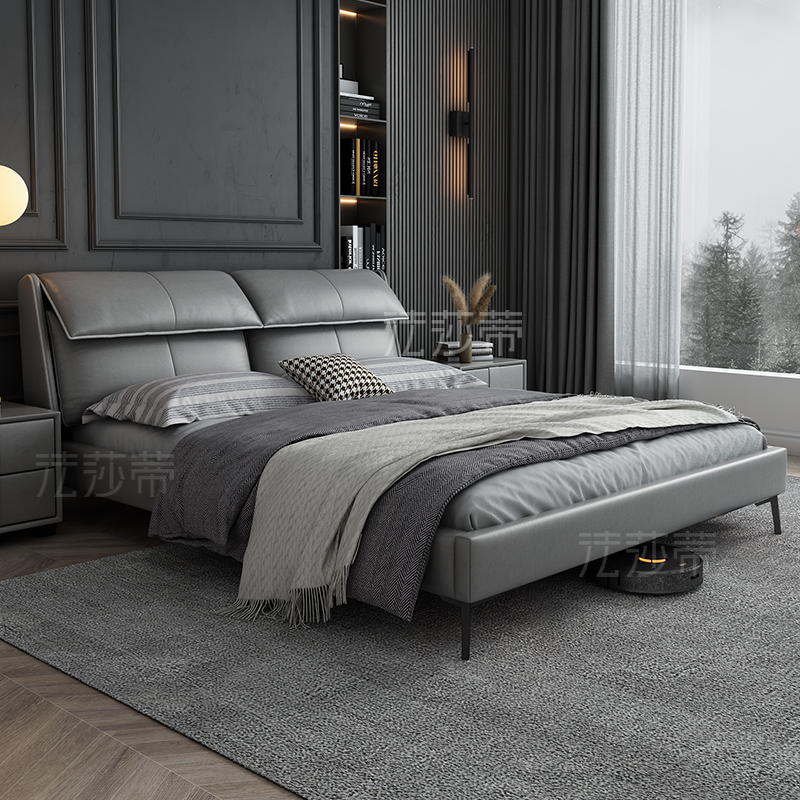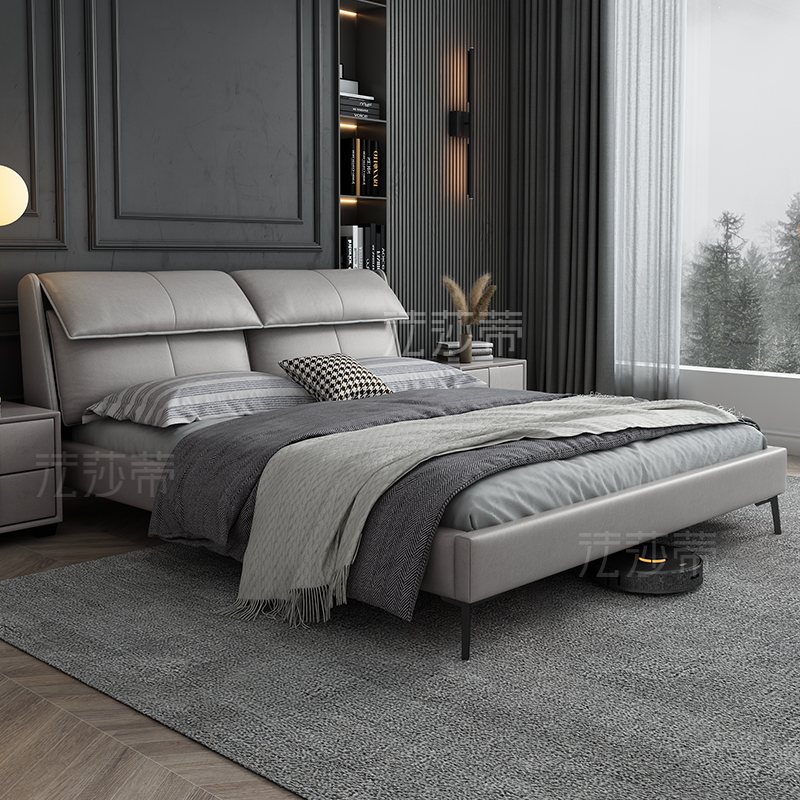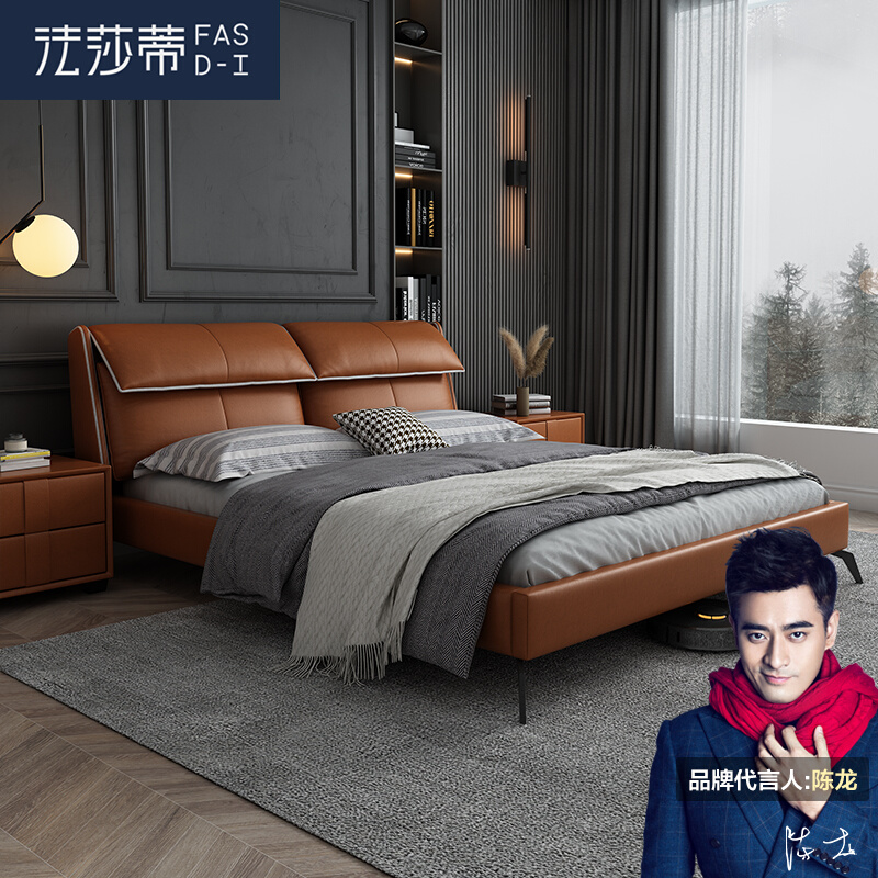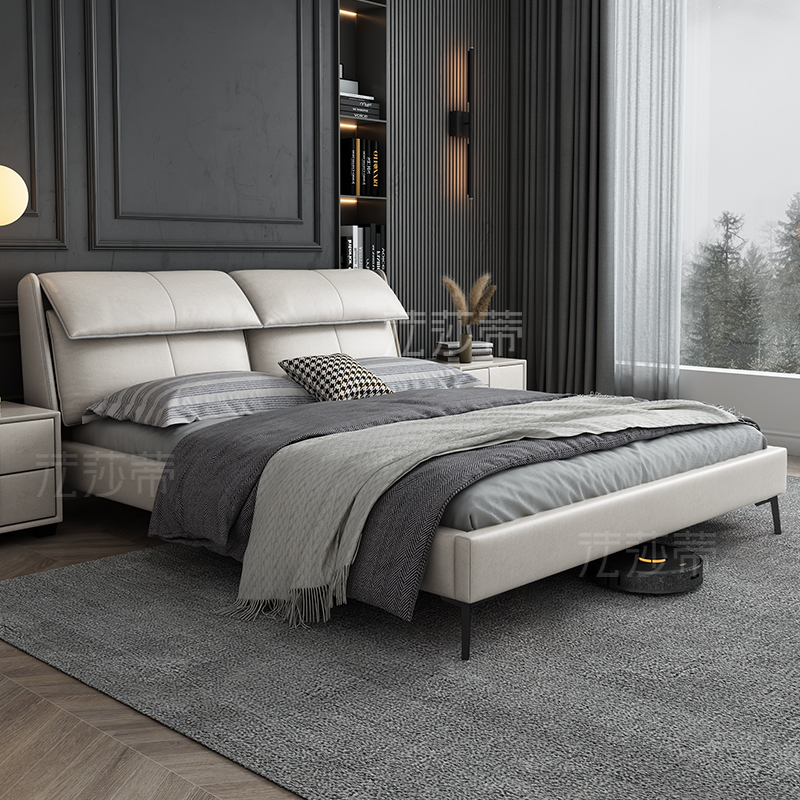 Modern minimalist tech bunk bed light extravagant Nordic minimalist solid wood cloth art bed Nordic minimalist double bed master bedroom with wedding bed