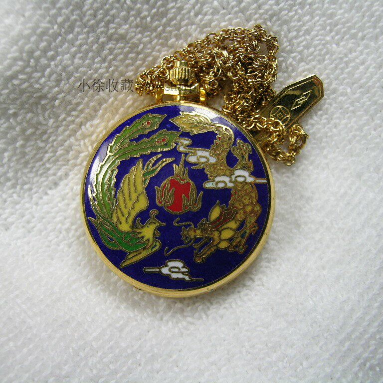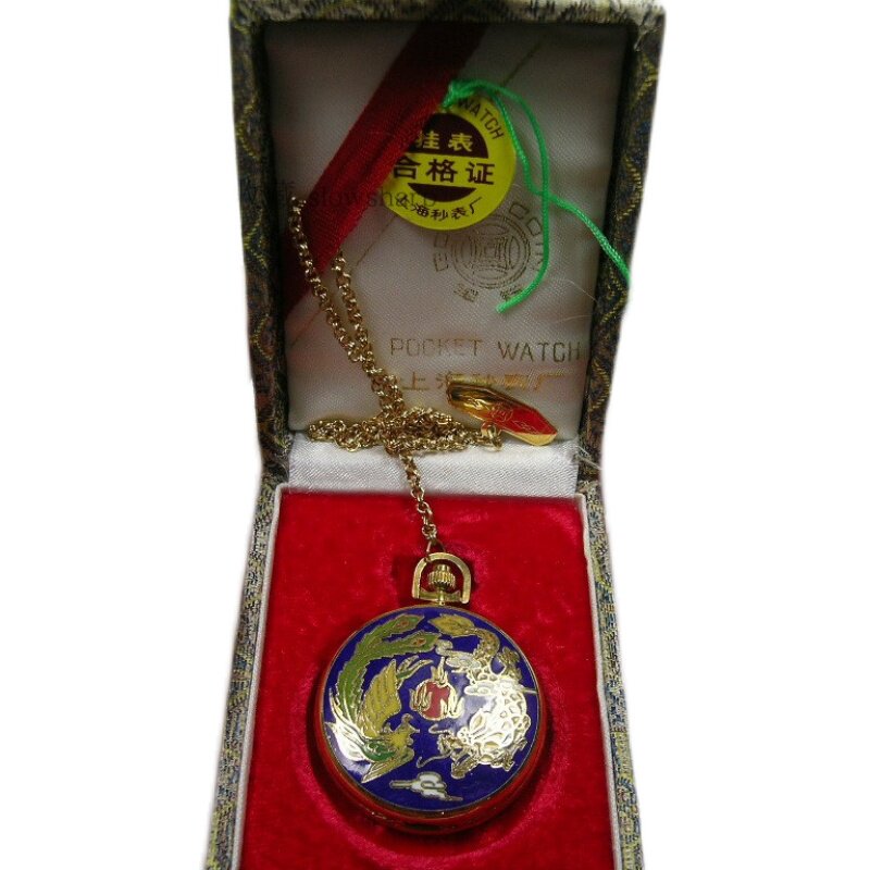 90s out-of-print stock, brand new Shanghai stopwatch factory, money brand mechanical pocket watch, cloisonné dragon and phoenix longevity